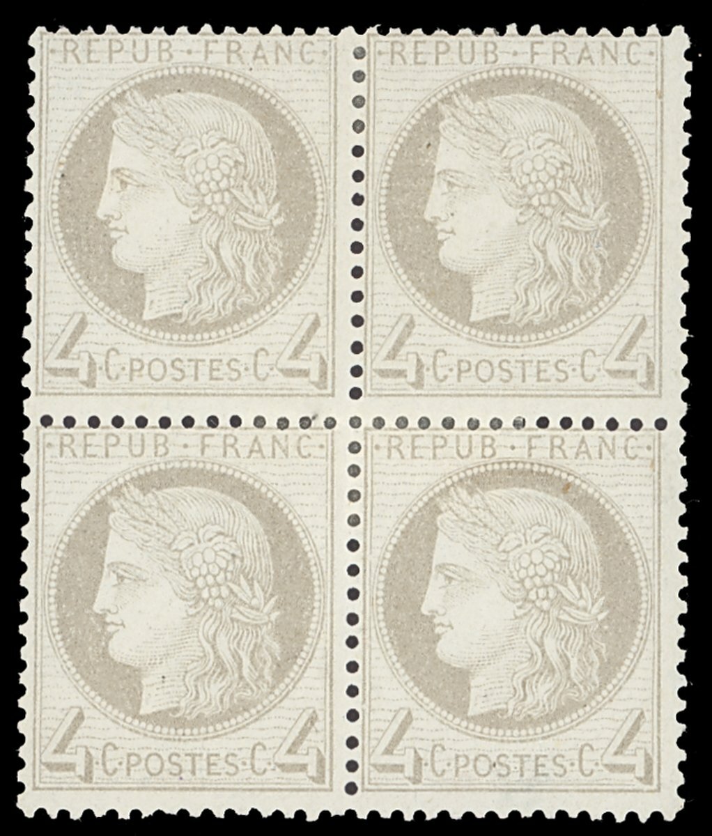 4c. grey, block of four, large part original gum; fine and fresh. Signed Brun. Spink Maury 52, €2,000