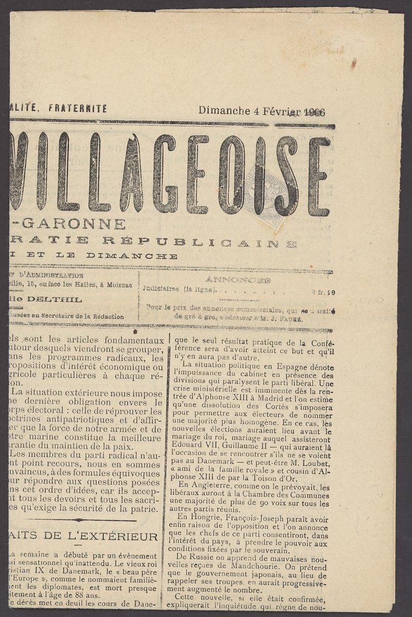 1906 (4 Feb.) issue of "La Feuille Villageoise" bearing 1c. grey applied before printing, thus the stamp is obliterated by the title of the newspaper .