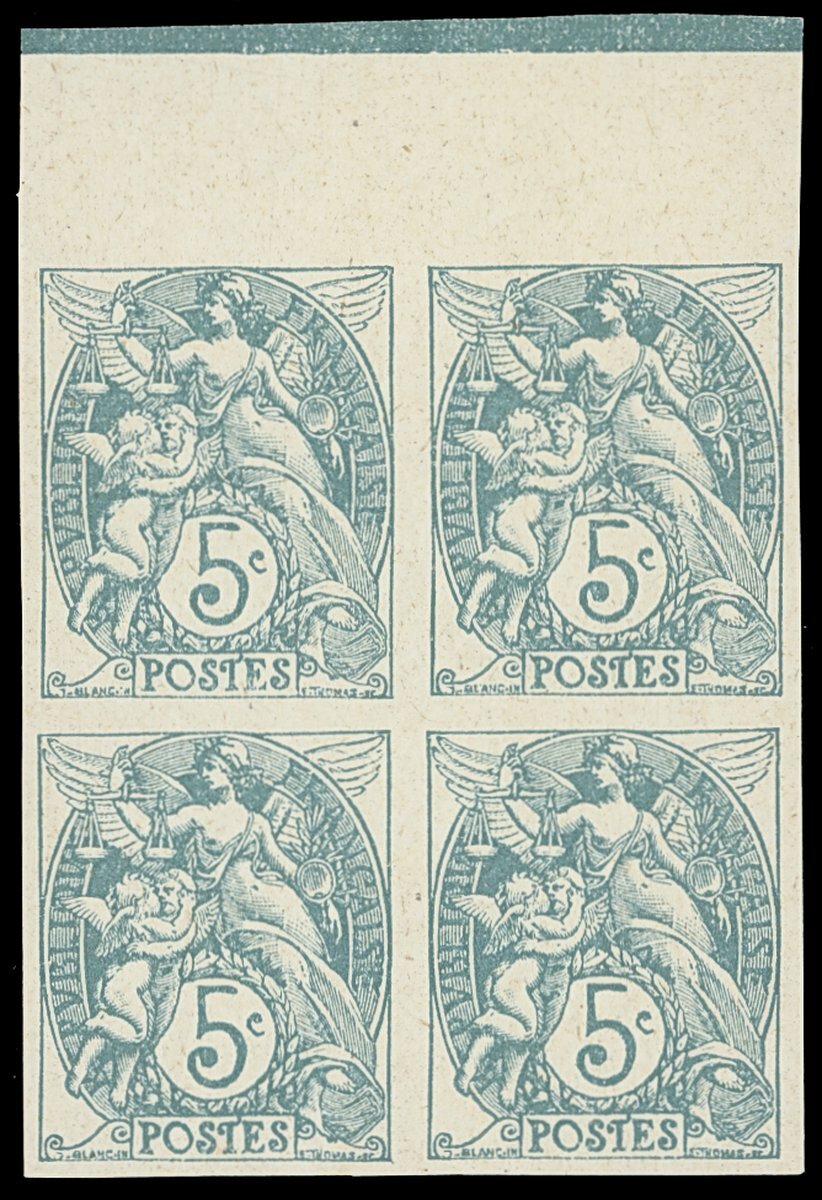 5c. green variety "imperforate" block of four with interpanneau margin at top, mint no gum, each stamp handstamped Brun on the reverse, very fine, Spink Maury 111, €400 .