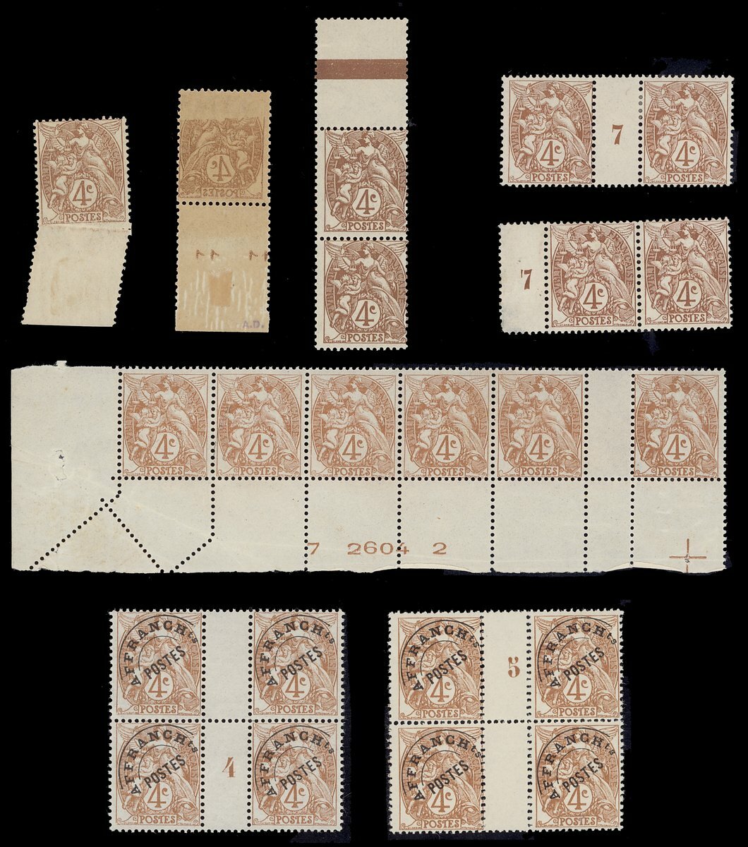 4c. brown mint selection on stockcards including variety "oblique perforation caused by folding", variety "recto-verso print", shades, Millesimes including on préoblitérés, generally fine, Spink Maury 110