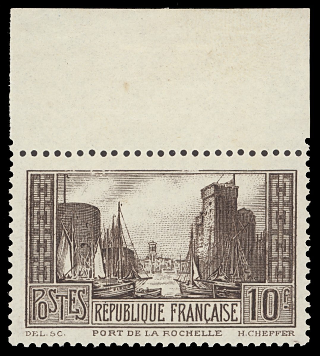 Special printing in black-brown with margin at top, original slightly toned gum, fine and rare. Spink Maury 261C, €6,000