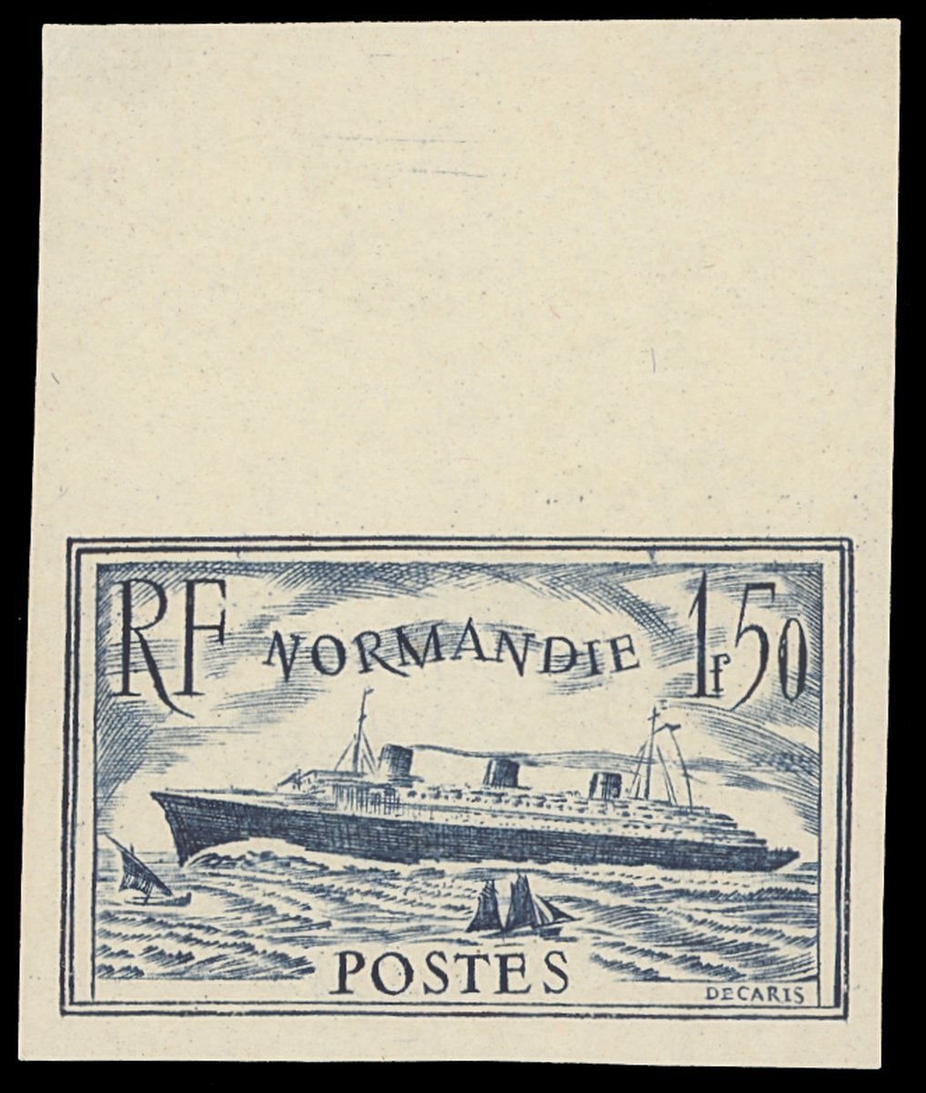 1fr.50 indigo, variety imperforate, unmounted slightly toned example from the top of the sheet. Spink Maury 299 var.