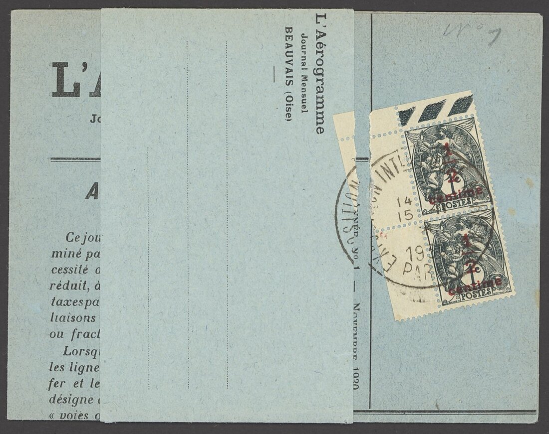 "L'Aérogramme" news letter bearing Blanc ½c. on 1c. pair from the upper left corner of the sheet, tied by Exposition cancellation; fine