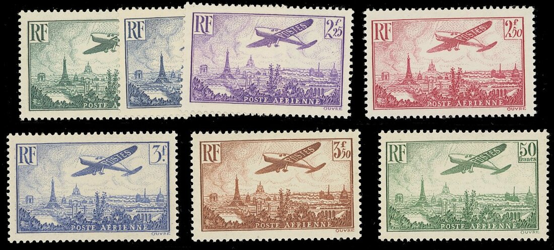 85c. deep green to 50fr. emerald set of seven, mint lightly mounted, fresh colour, select centering, very fine. Spink Maury 8-14 €1,180