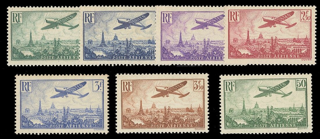 85c. deep green to 50fr. emerald set of seven, mint part/large part of evenly toned gum, good colour, well-centered set, fine, Spink Maury 8-14, €1,180