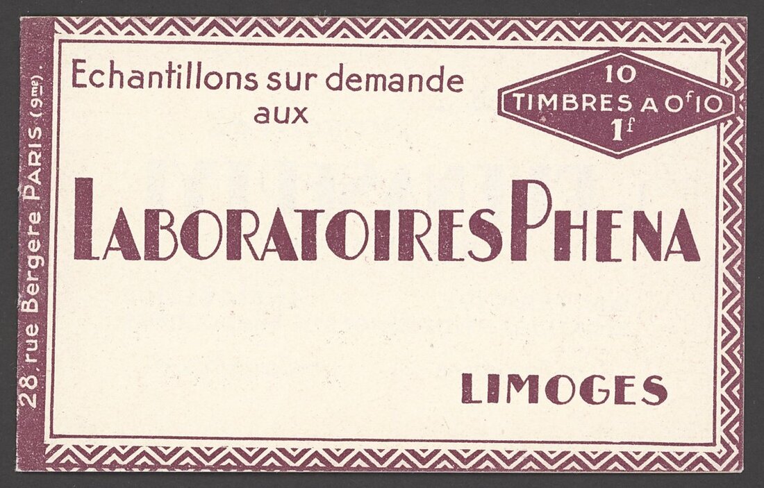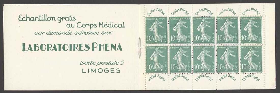 Sowers, Thin Figures, 10c. green, booklet with pane of ten with "Phena" advertising labels, unmounted mint, centred to foot; fine. Spink Maury 6, €675