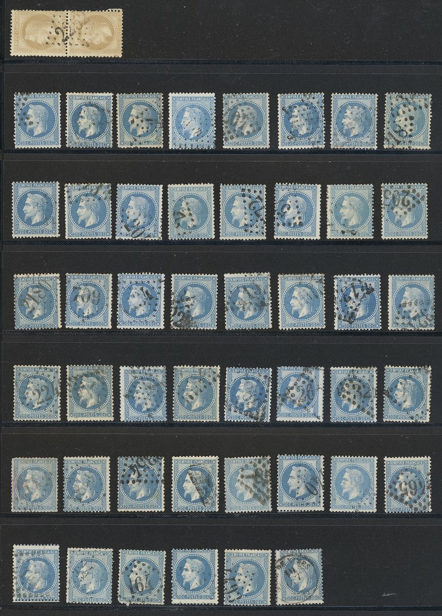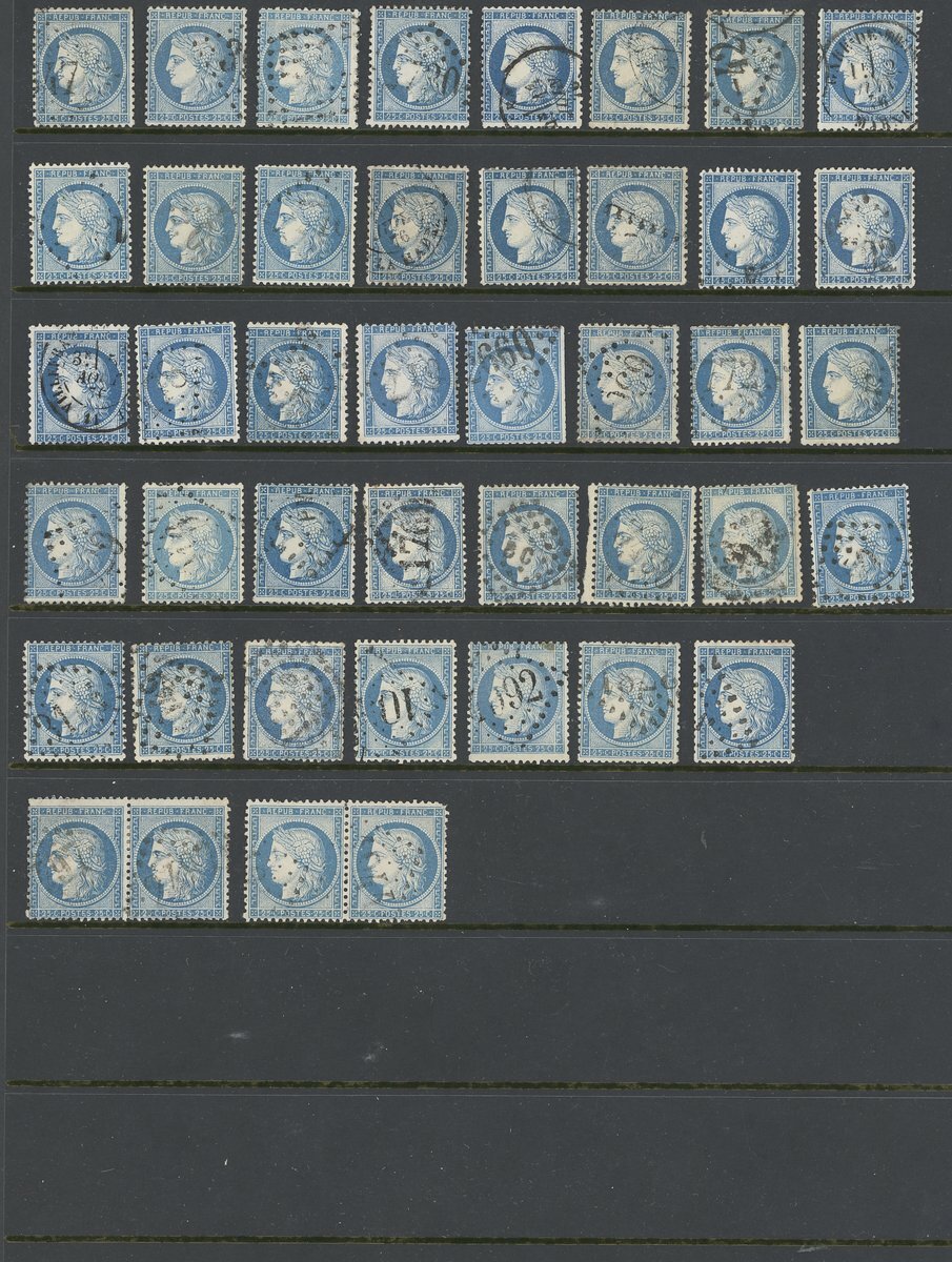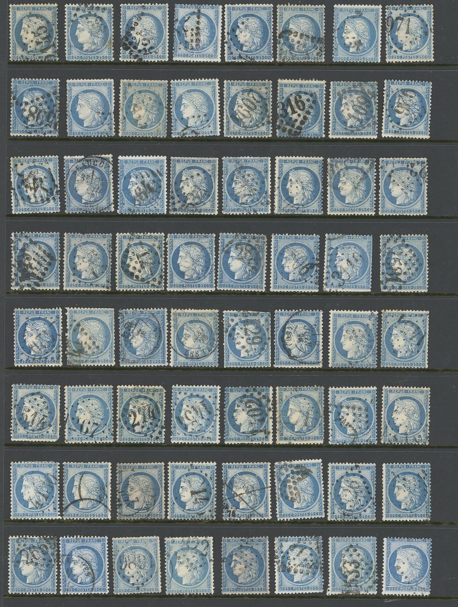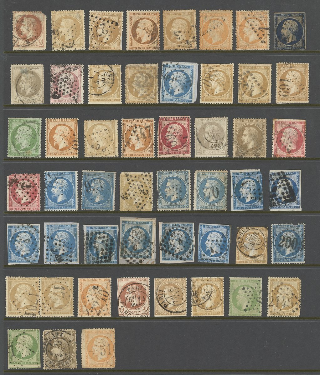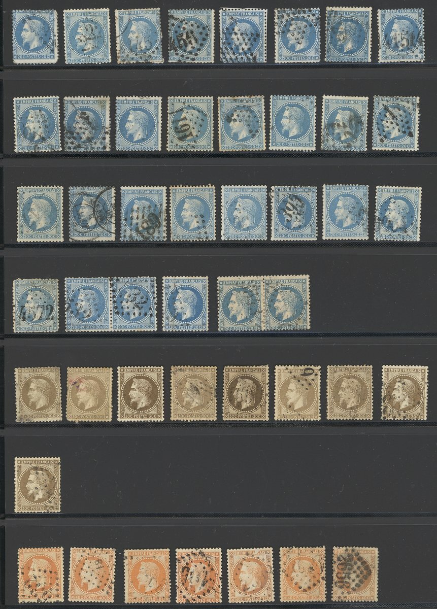 1863-75 study of shades and postmarks on perforated Ceres & Napoleon issues, with well over a thousand examples on stock pages, organized by denomination, showing a variety of shades and cancellations, including both c.d.s. and star cancels, condition varies as expected, with many fine examples included, an ideal lot for the early France or postmark collector .