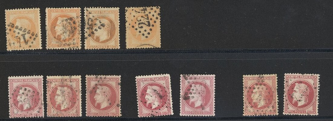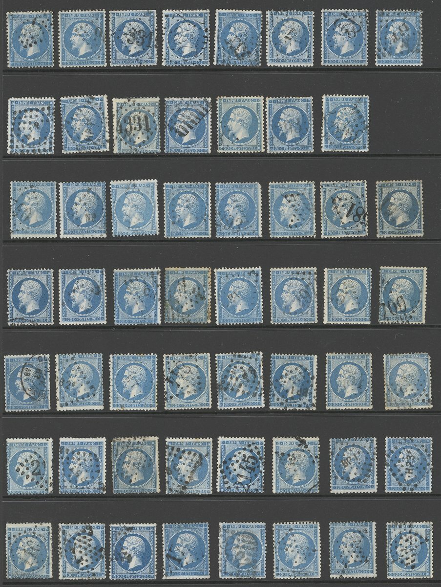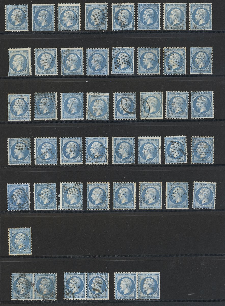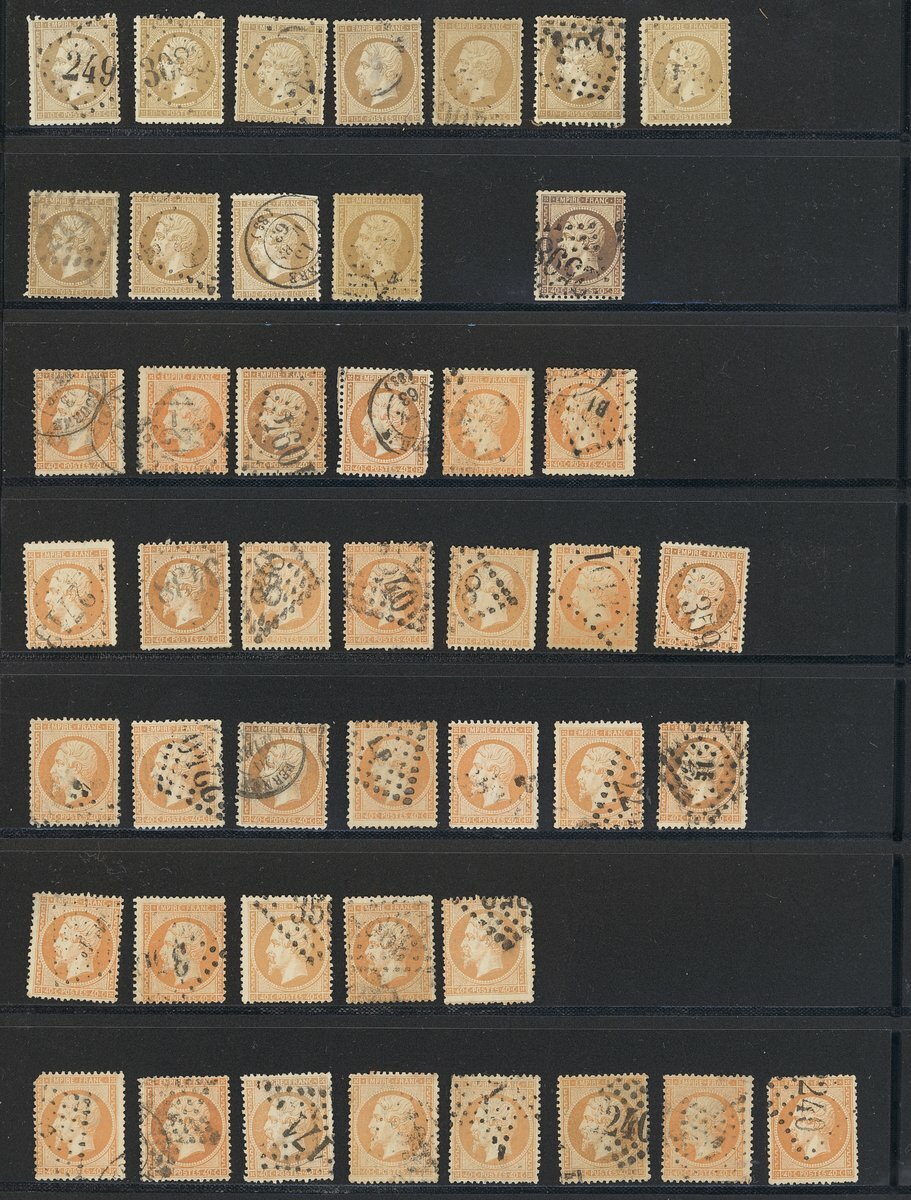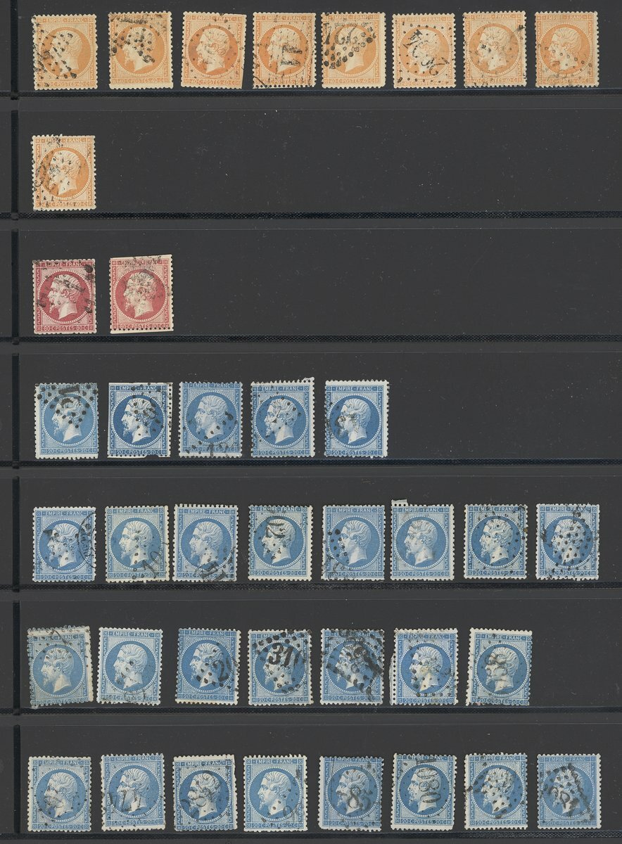1863-75 study of shades and postmarks on perforated Ceres & Napoleon issues, with well over a thousand examples on stock pages, organized by denomination, showing a variety of shades and cancellations, including both c.d.s. and star cancels, condition varies as expected, with many fine examples included, an ideal lot for the early France or postmark collector .