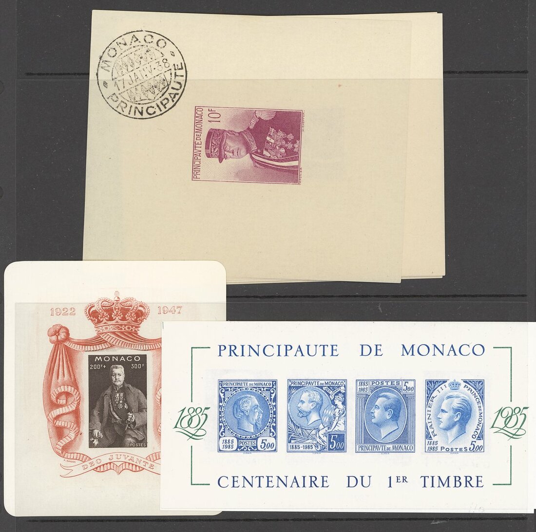 Selection on pages, including 1938 National Fete miniature sheet (7 mint and one cancelled), 1938 Anti Cancer set in blocks of four, 1940 Red Cross set, 1947 25th. Anniversary miniature sheet, 1985 Stamp Centenary special printing miniature sheet, 1987 Stamp Exhibition special printing miniature sheet, etc., a few used but chiefly mint or original gum