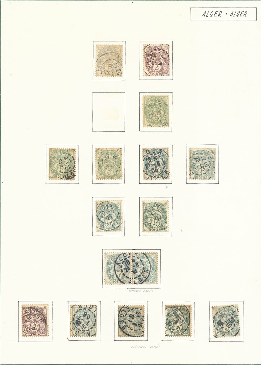 1900-10 collection of "Bureaux Algerienes" Algerian post offices cancellations on Type Blanc stamps, a range of values and largely complete in terms of the various offices (100's)