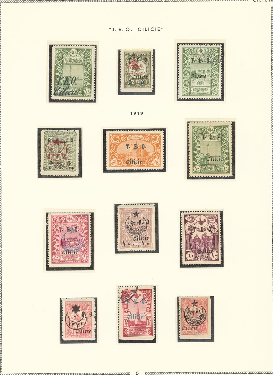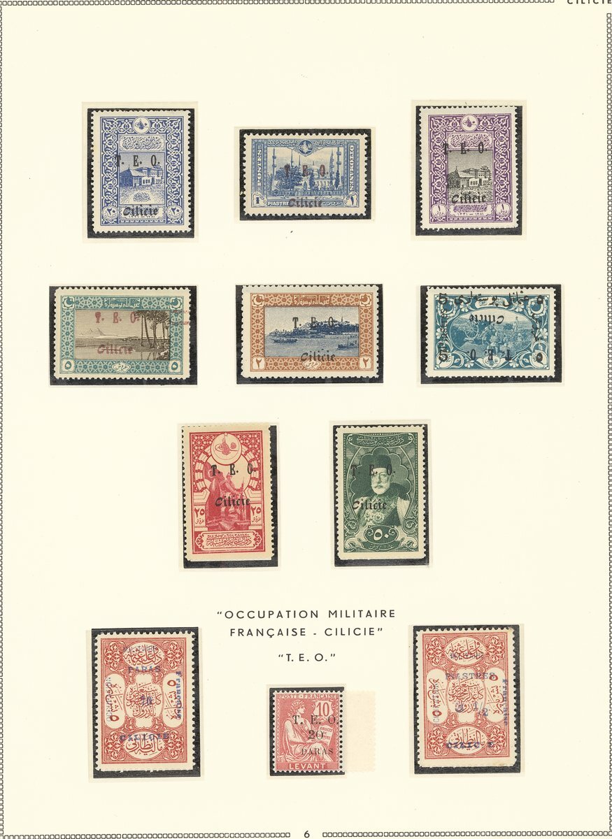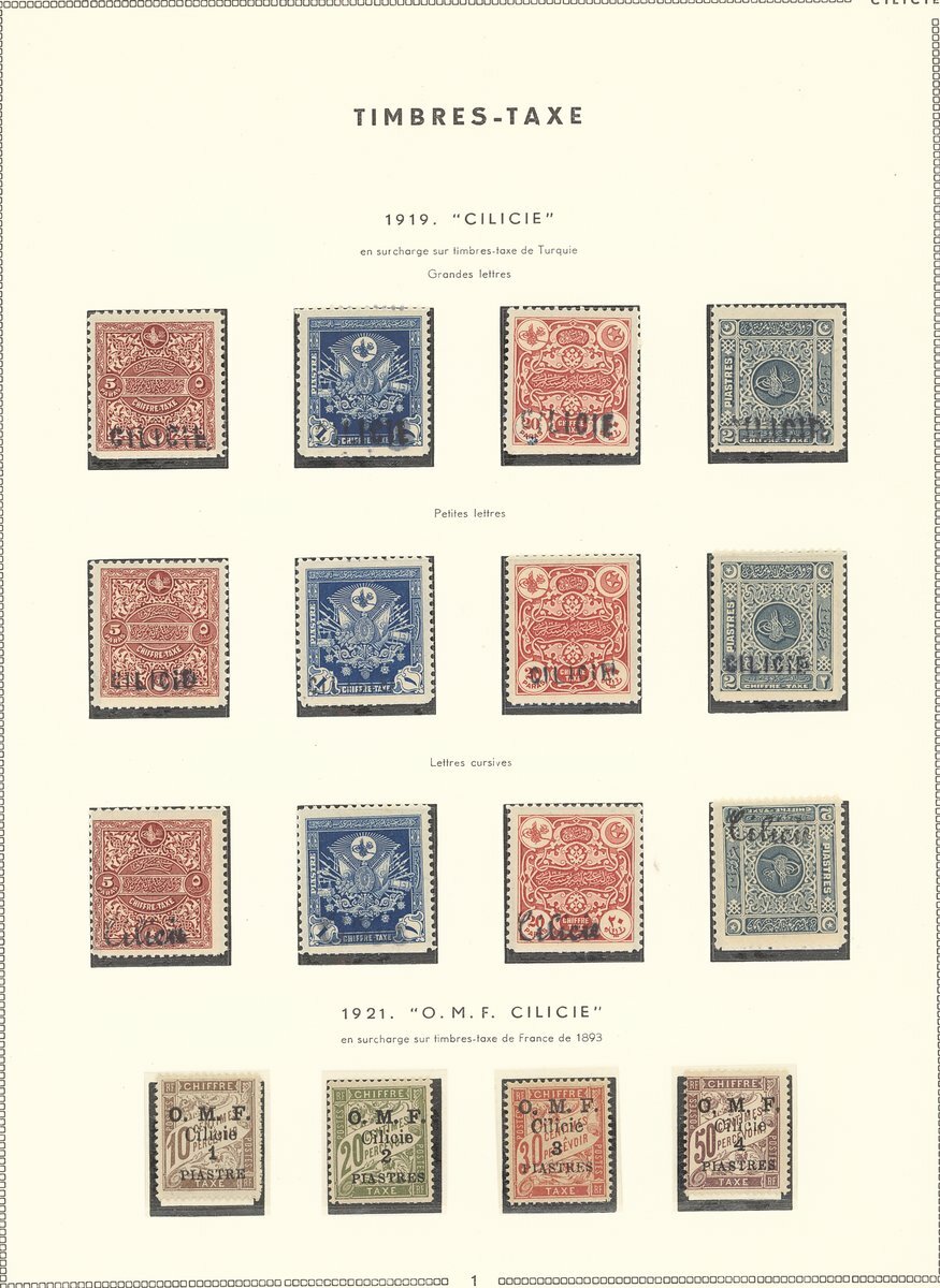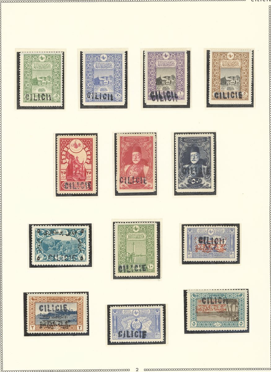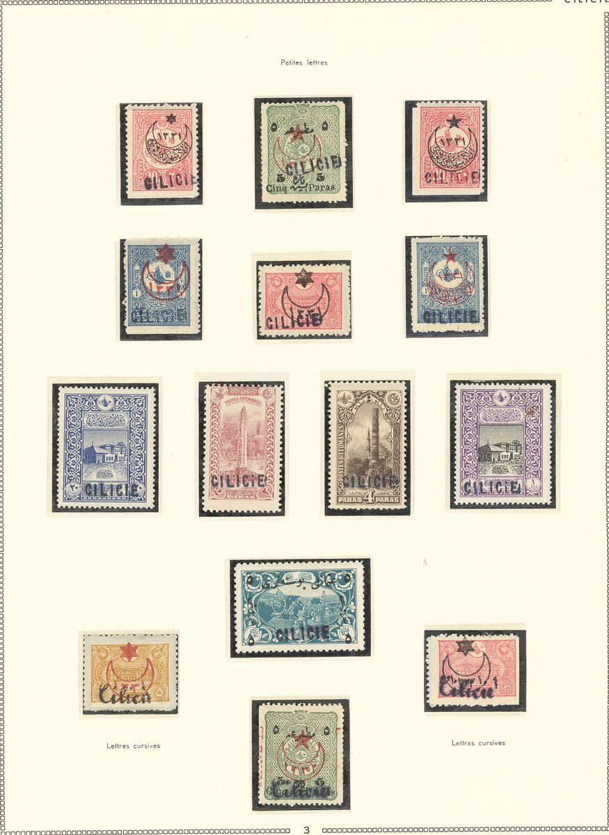 1919-20 mint collection on album pages including 1919 5pa. green with Type 1 overprint, 1919 20pa. rose-carmine with Types 2 and C overprint, 1919 1pi. dull blue with Types 3 and E overprints and 50pi. green on yellow, 1920 'O.M.F. Cilicie' Type 9 surcharges to 50pi. on 1f. and 1920 larger letter surcharge set to 100pi. on 5f., 1920 'O.M.F. Cilicie Sand. Est.' set to 20pi. on 1f., Postage Dues, etc., Cat. £1,500+