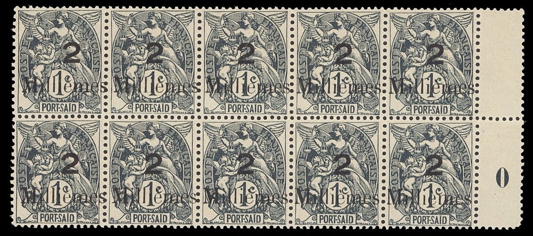 1921 2m on 1c. grey-black, error of surcharge, block of ten with millésime '0', unmounted mint; toned gum. Roumet Certificate (2012). Yvert 61c, €1,000