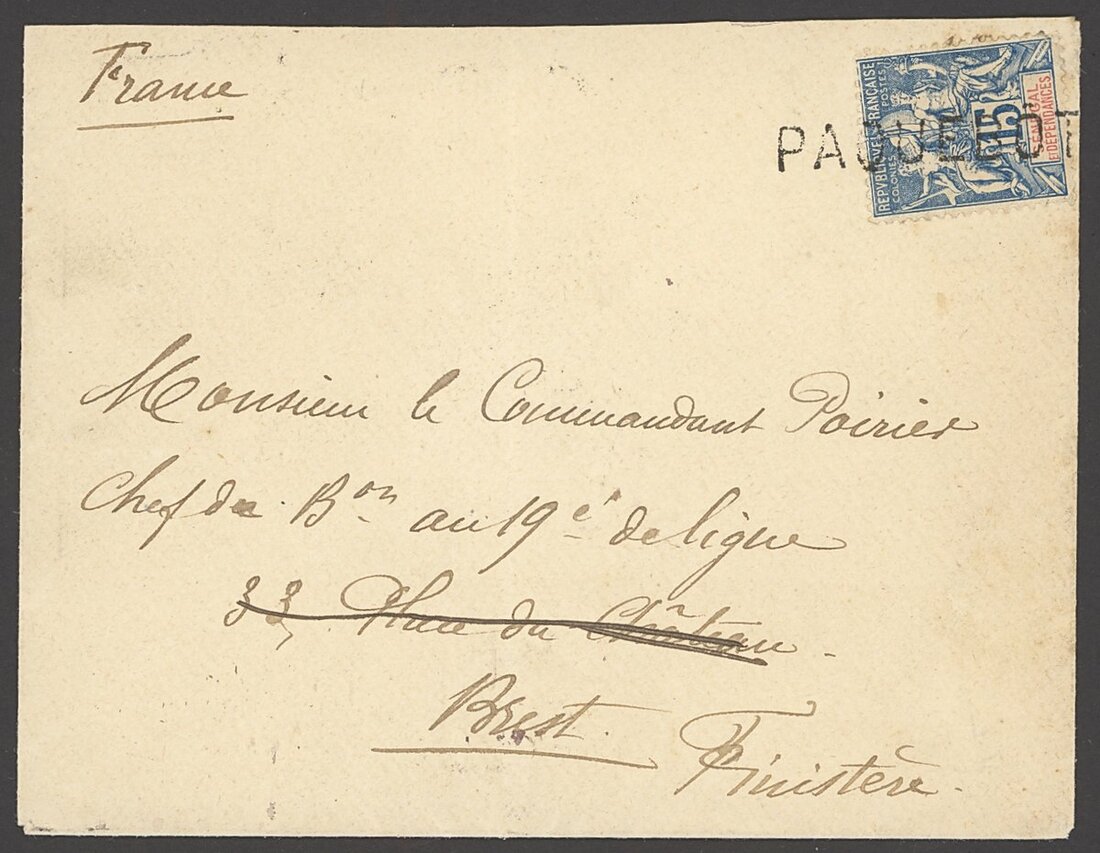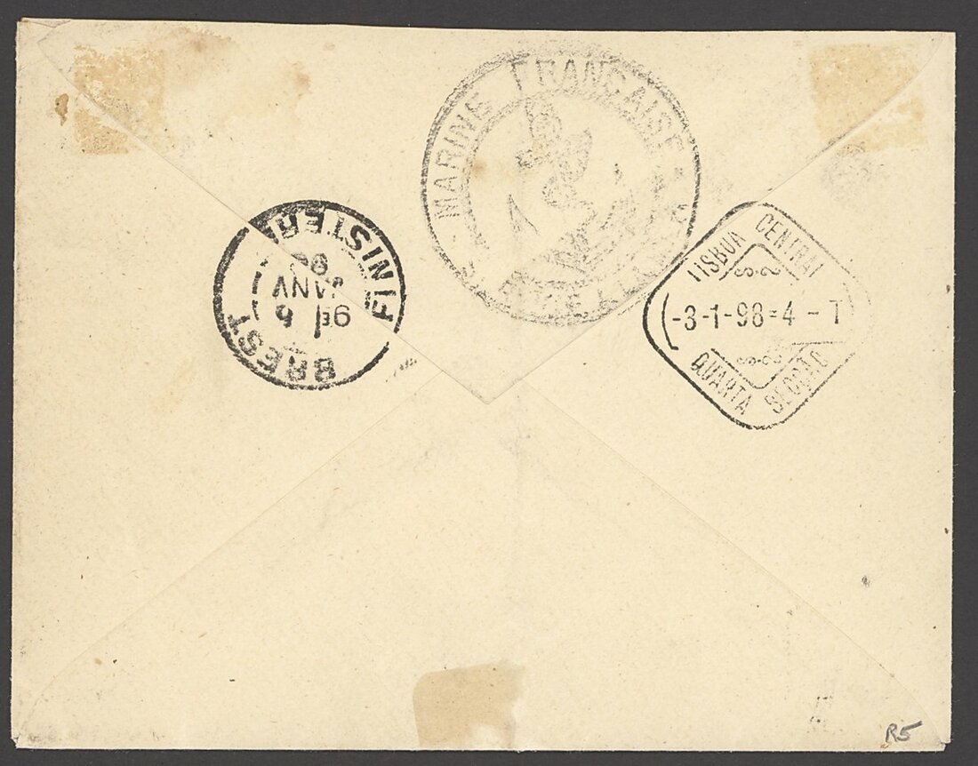 1897 (Dec.) envelope to Brest franked 15c., posted on a ship calling at Dakar as Paquebot mail, straight line