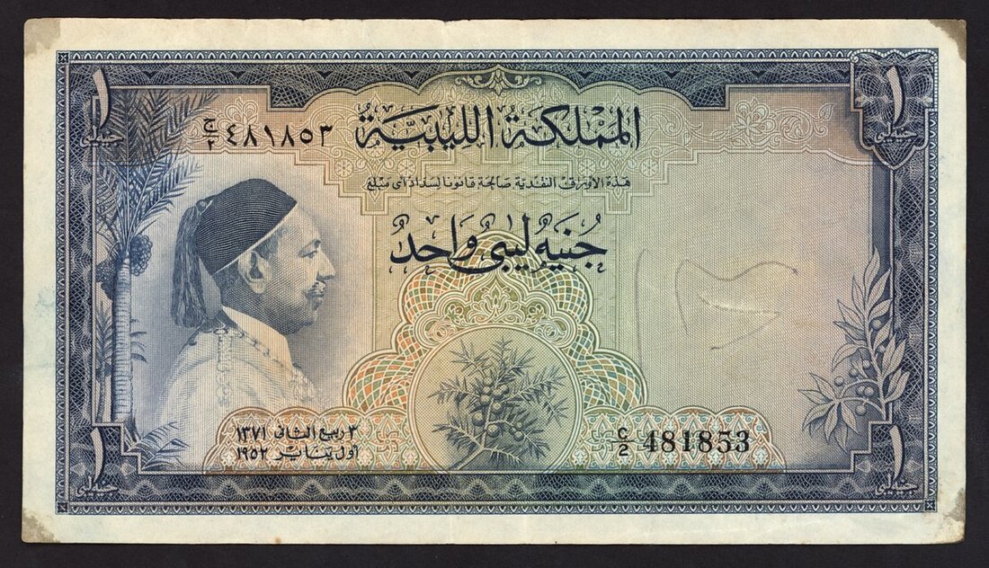 Kingdom of Libya, 1 pound, 1 January 1952, serial number (Pick 16, TBB B105), good fine