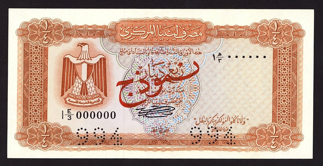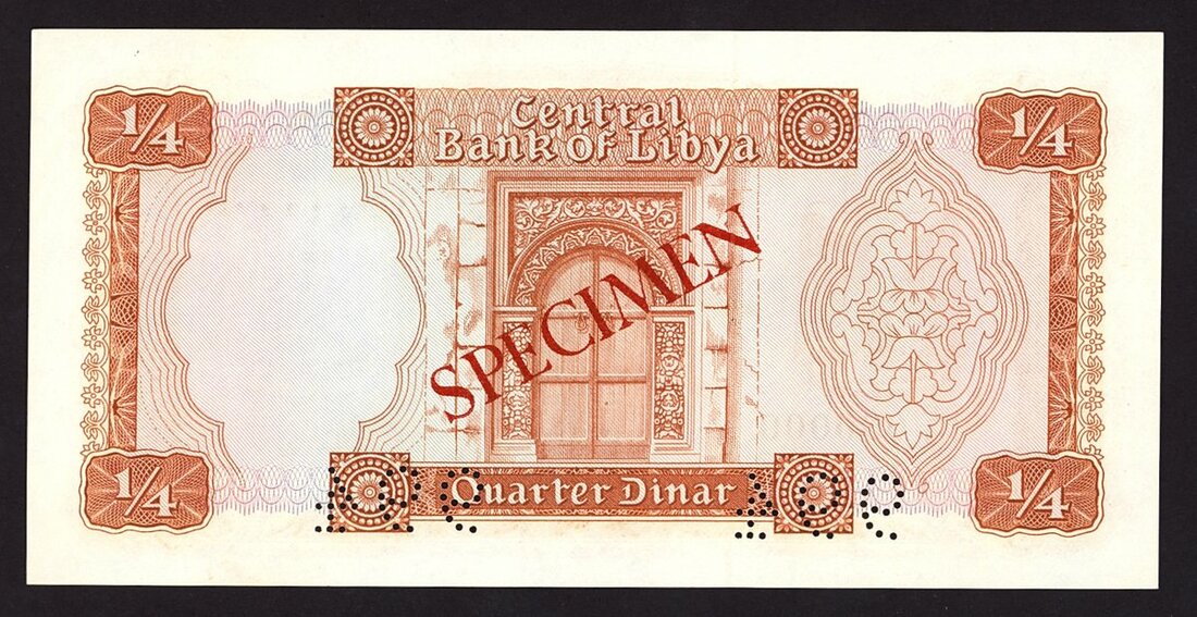 Central Bank of Libya, specimen 1/4 dinar, (ND 1972), (Pick 33s, TBB B501bs), about uncirculated
