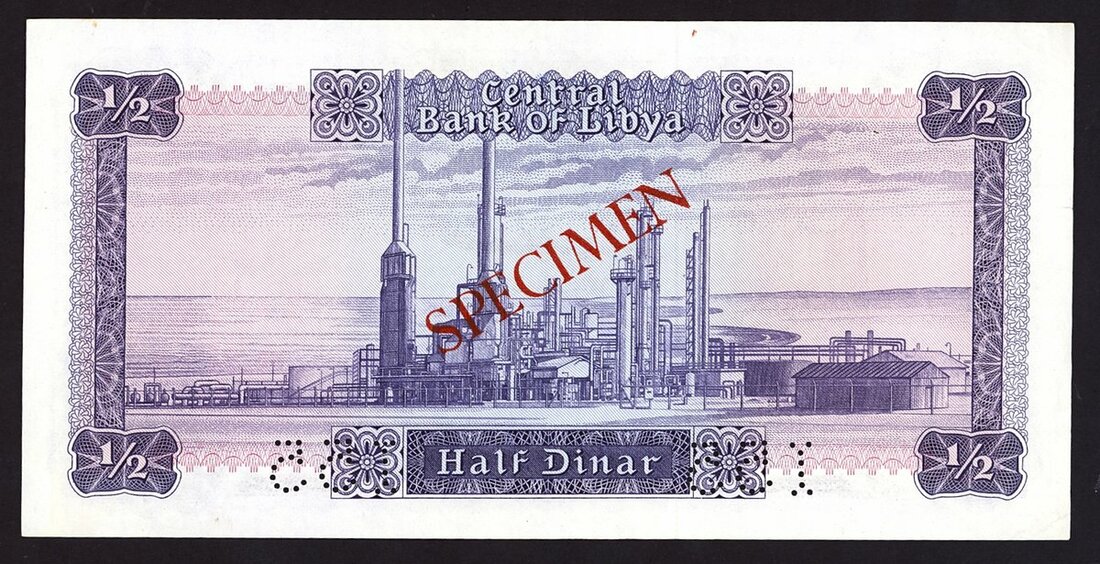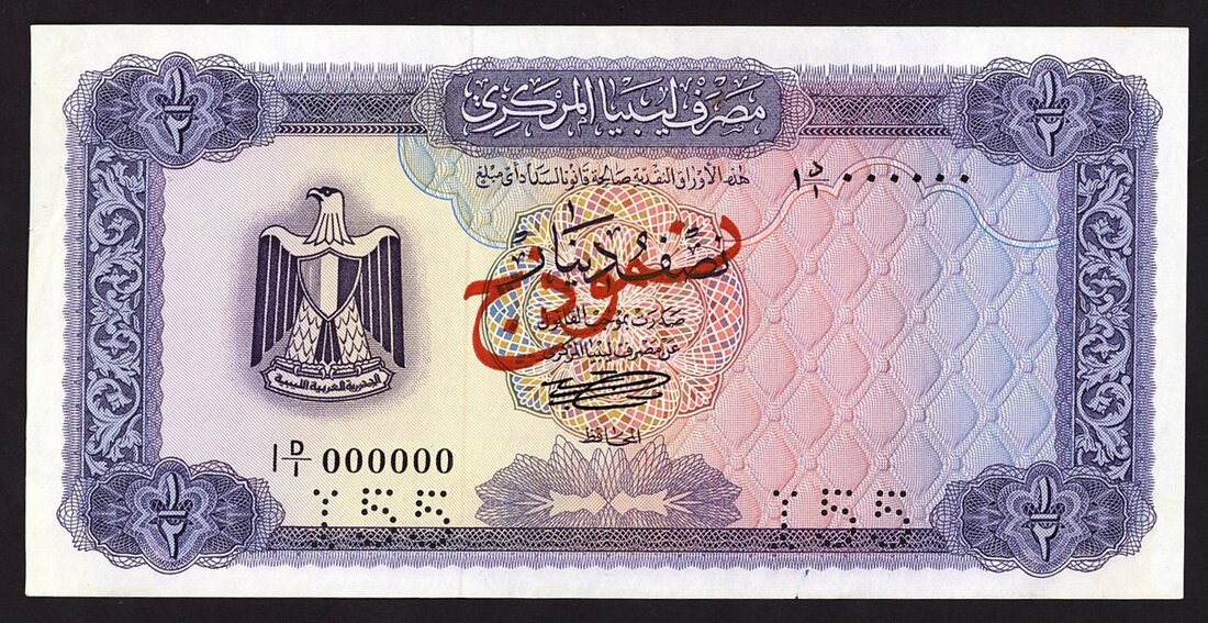 Central Bank of Libya, specimen 1/2 dinar, (ND 1971), (Pick 34as), extremely fine, much scarcer without Arabic inscription