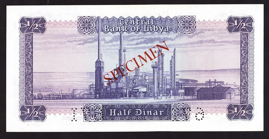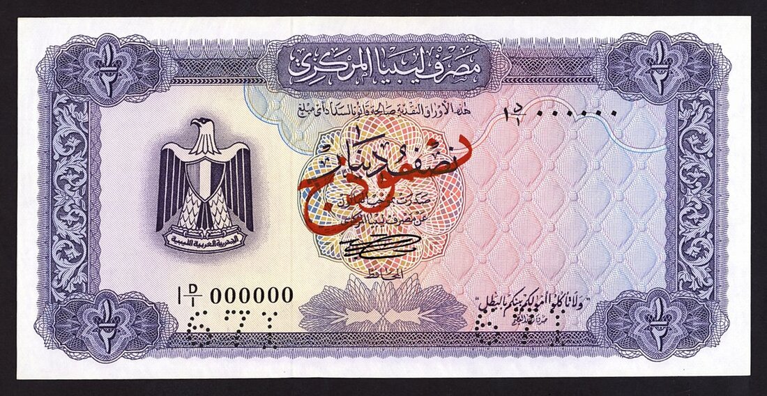 Central Bank of Libya, specimen 1/2 dinar, ND (1972), (Pick 34bs, TBB B502bs), About Uncirculated