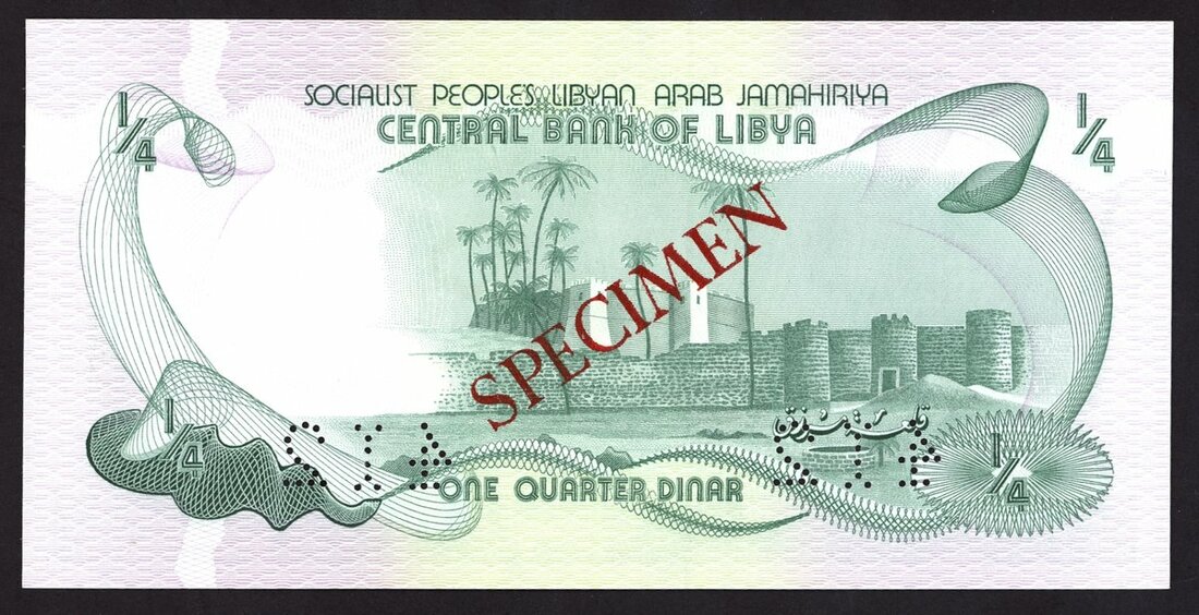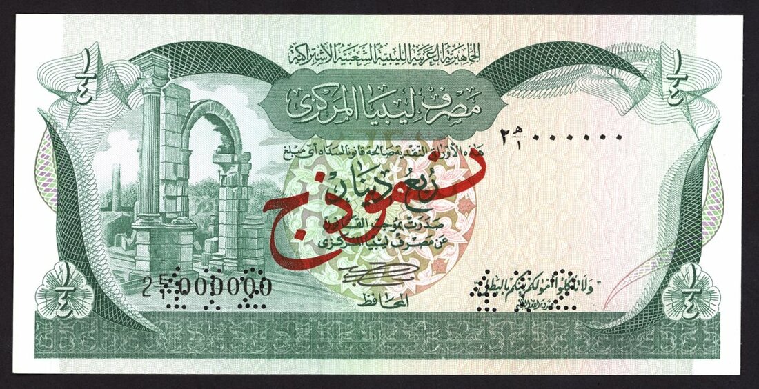 Central Bank of Libya, specimen 1/4 dinar, ND 1980 (Pick 42As, TBB B506as1), Uncirculated