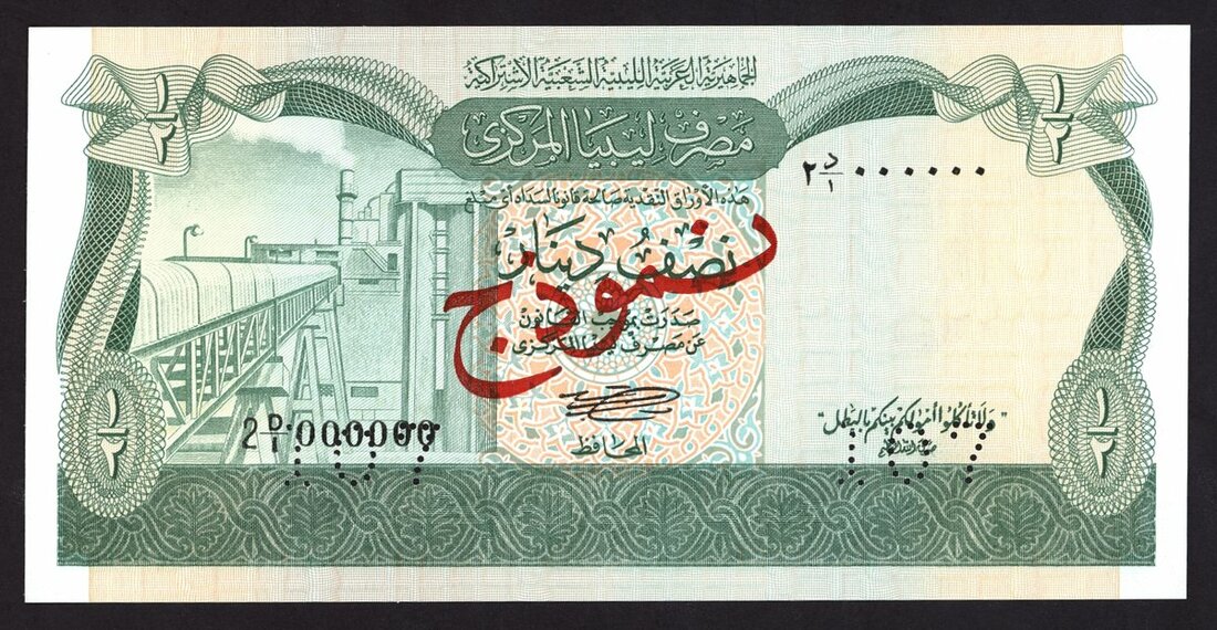 Central Bank of Libya, specimen 1/2 dinar, ND 1980, (Pick 43s, TBB B507as1), Uncirculated