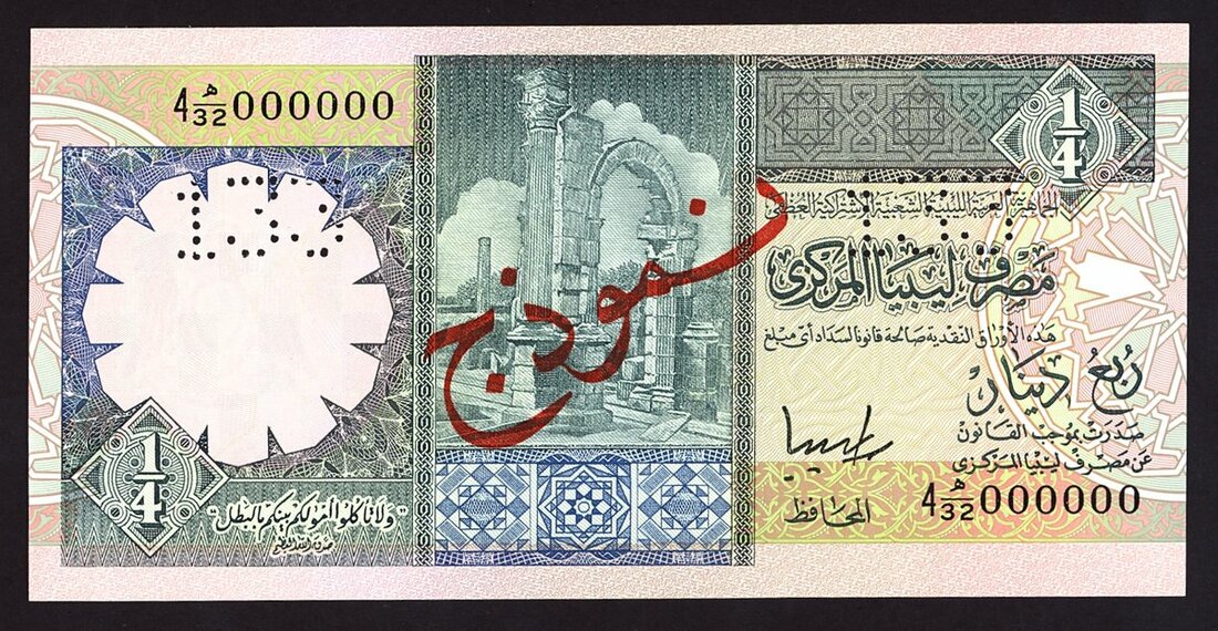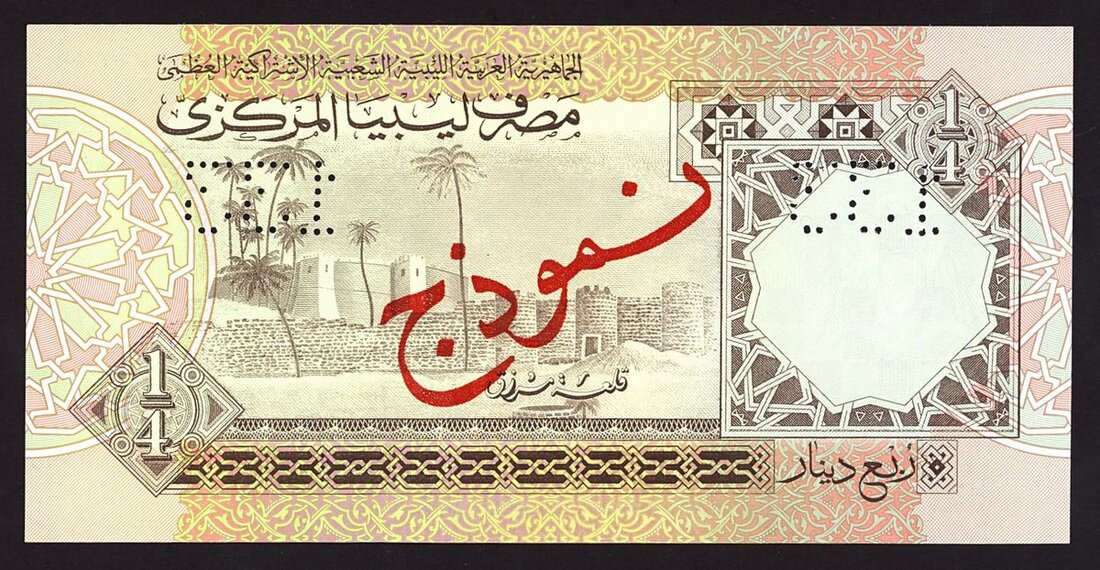 Central Bank of Libya, specimen 1/4 dinar, ND (1991), (Pick 57s, TBB B521cs), Uncirculated