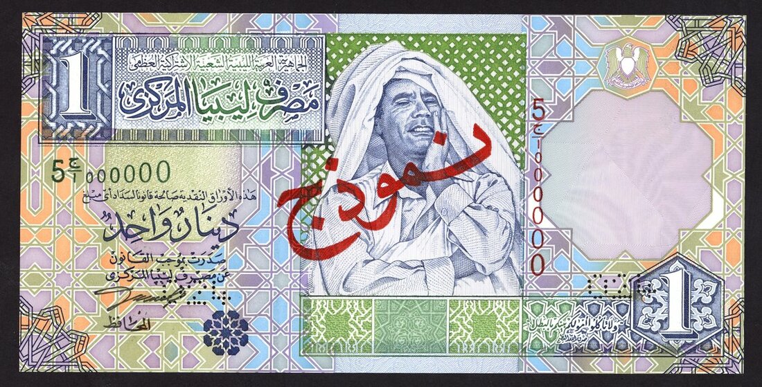 Central Bank of Libya, specimen 1 dinar, ND (2002), (Pick 64s, TBB B528as), uncirculated, scarce