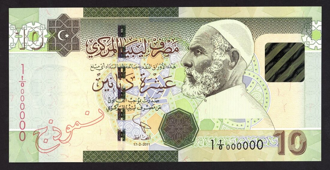 Central Bank of Libya, specimen 10 dinars, 17.2.2011, (Pick 78As, TBB B542as), Uncirculated