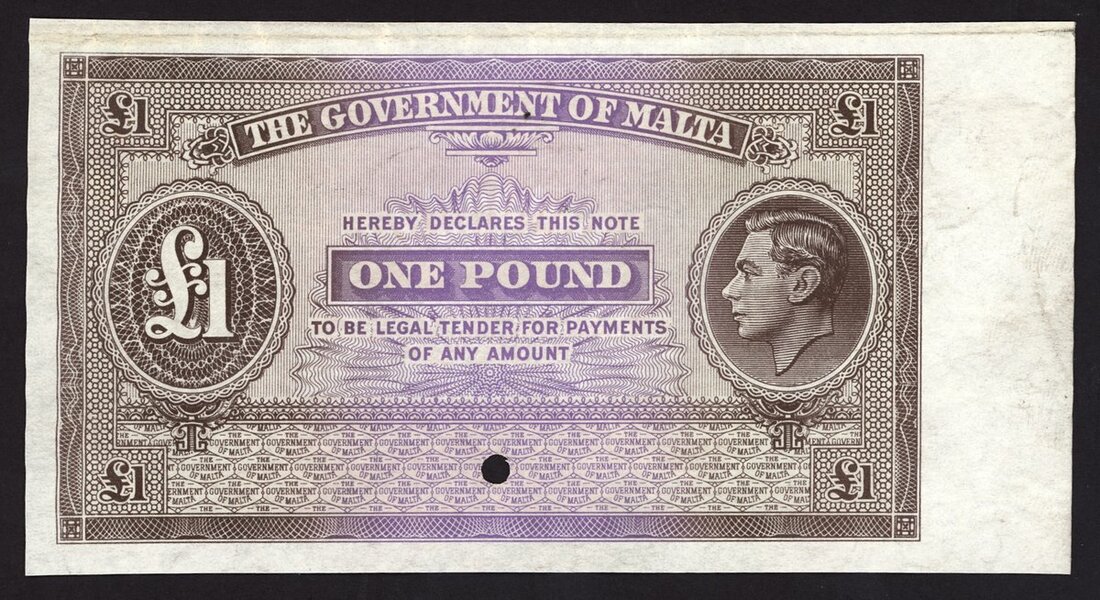 (x) Government of Malta, proof £1, ND (ca 1939) brown and lilac, George VI at right, value at left