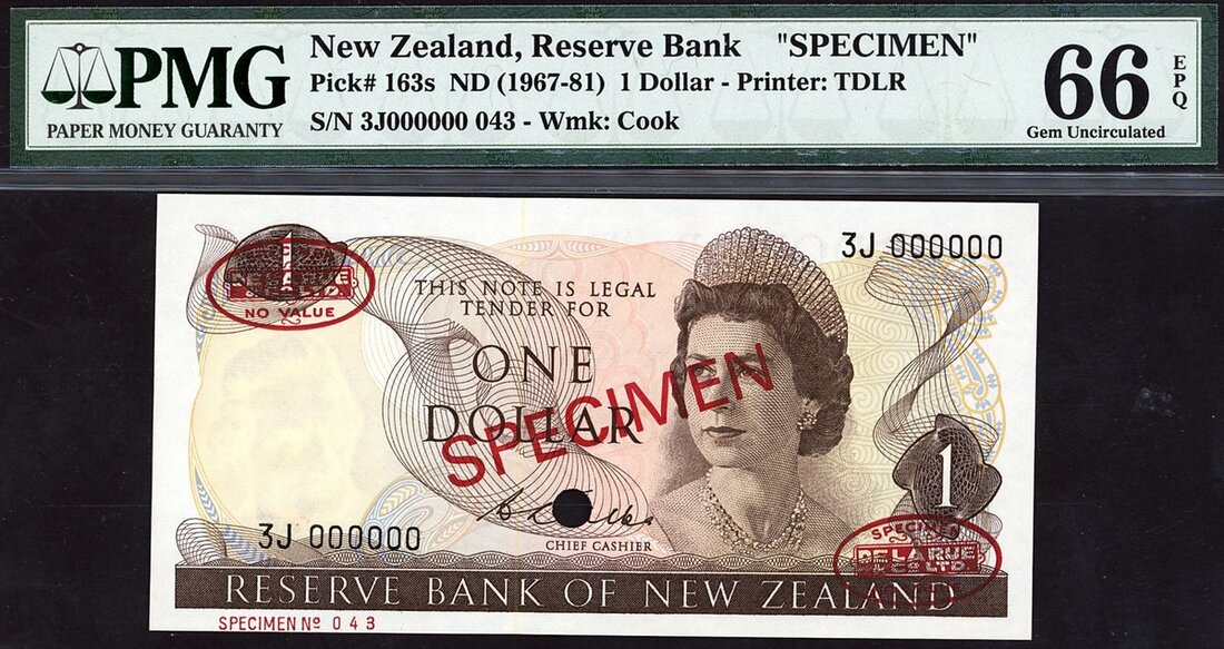 (x) Reserve Bank of New Zealand, specimen £1, ND (1967-81), (Pick163s, TBB B110as), in PMG holder 66 EPQ Gem Uncirculated