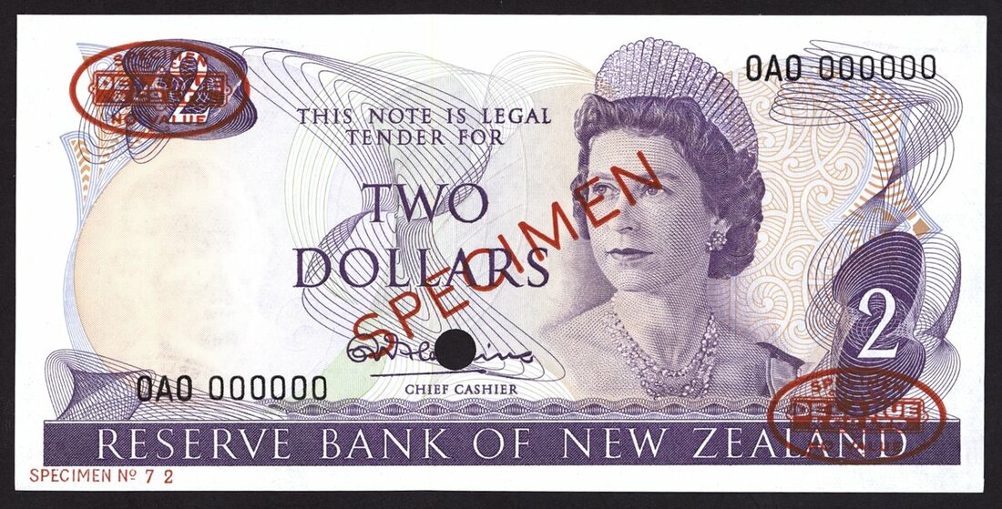 (x) Reserve Bank of New Zealand, specimen £2, ND (1967-81), (Pick164s, TBB B111as), minor handling at lower left, otherwise about Uncirculated