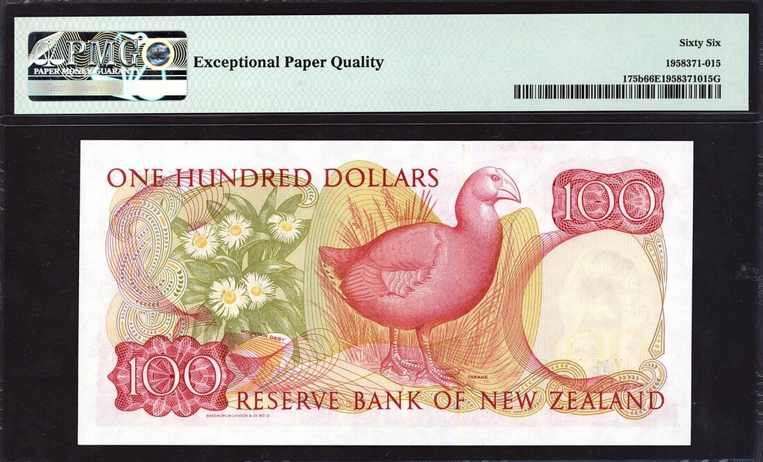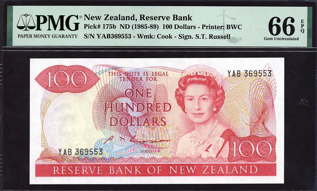 (x) Reserve Bank of New Zealand, $100, ND (1985), prefix YAB, red, Elizabeth II at right, Russell signature