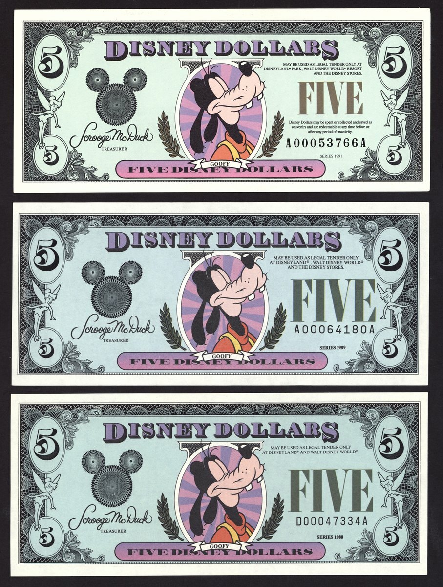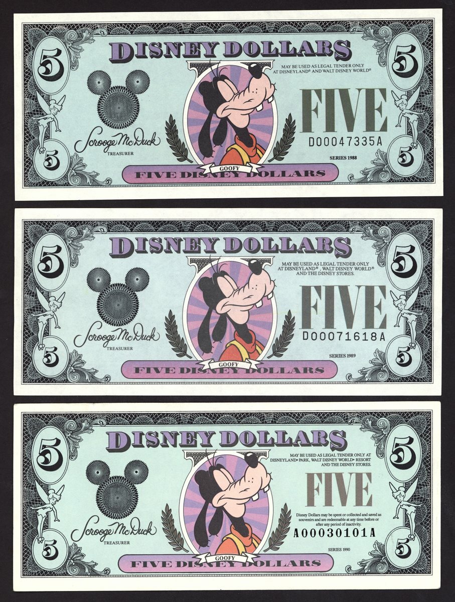 The Walt Disney Company, 5 dollars, 1988-91 Goofy at centre