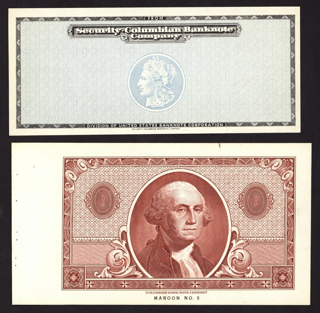 Colombian Bank Note Company, a maroon colour standard, also a test note,
