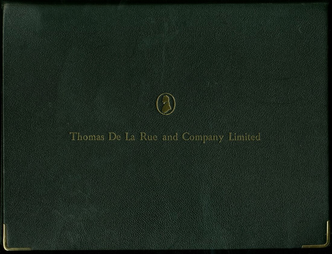Thomas De La Rue and Company Limited, leather bound infrmative, inlcuding representative work of some banknotes, vignettes, patters and other features, interesting
