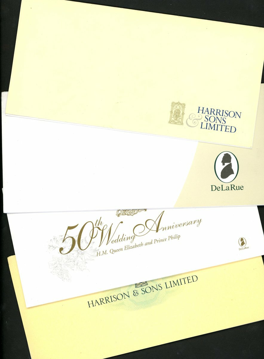 De La Rue/Harrisons, Promotional folder for De La Rue stamp paper manufactured in the late 1990s at then recently acquired Harrisons factory including 4 presentation folders (2 x De La Rue, 2 x Harrisons) containing a total of 19 commemorative stamps.