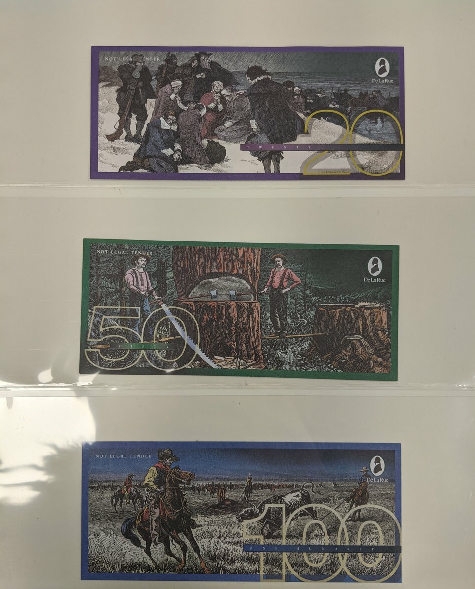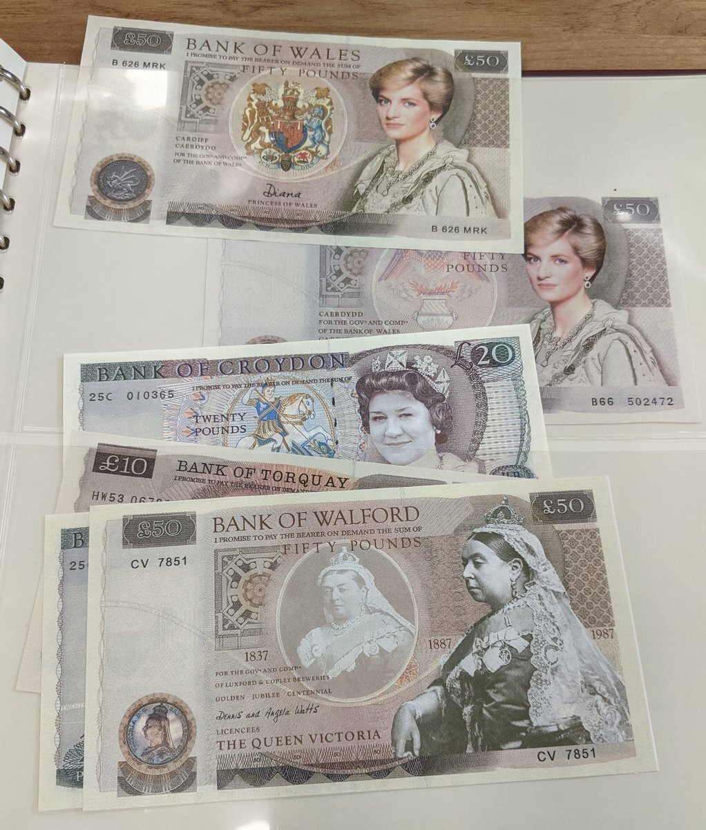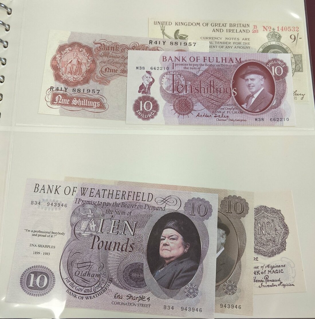 An album of skit notes and test notes, also some banknote related postcards,