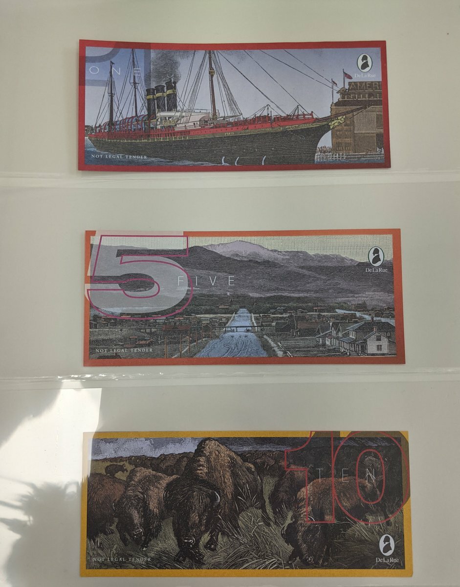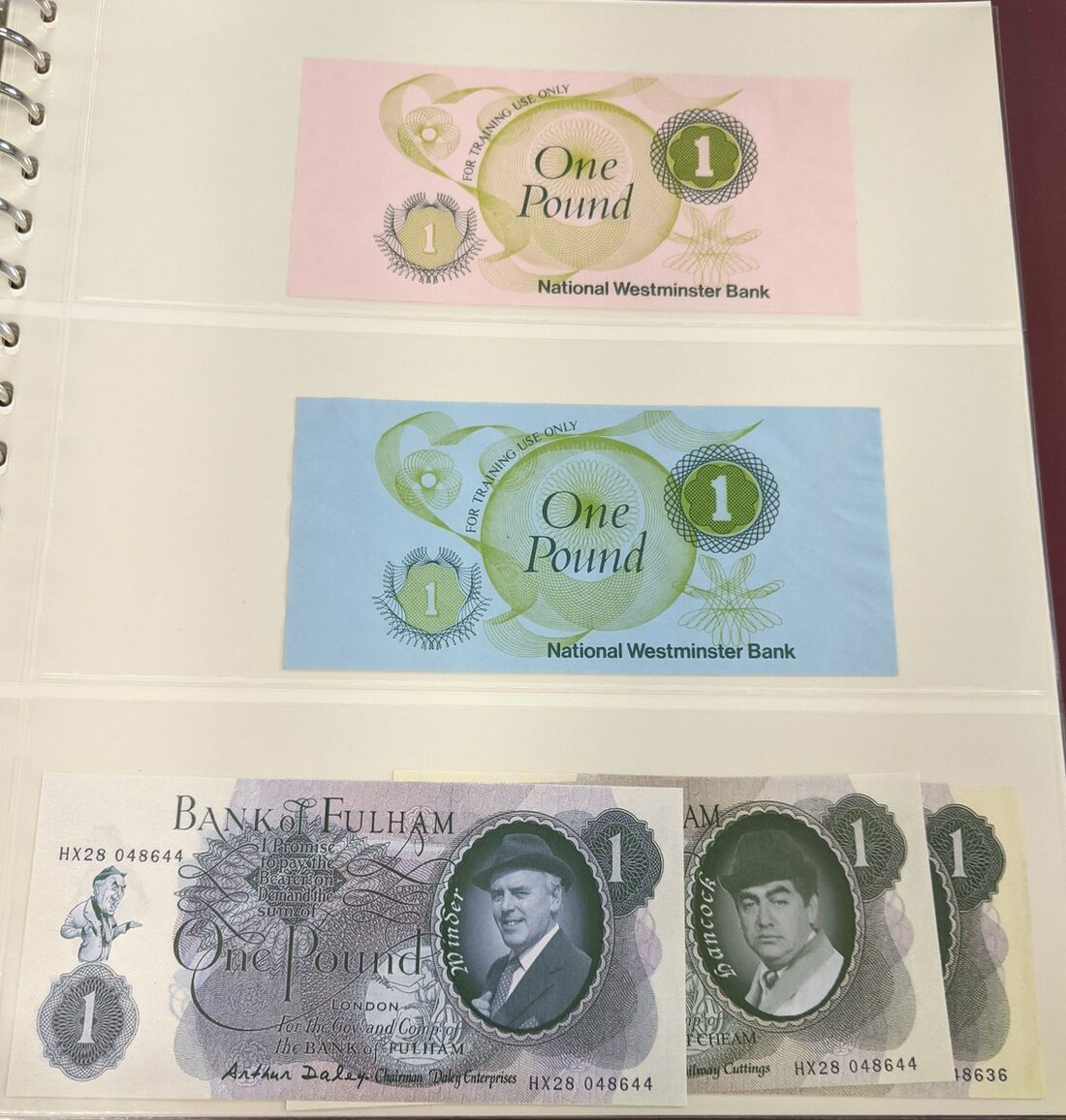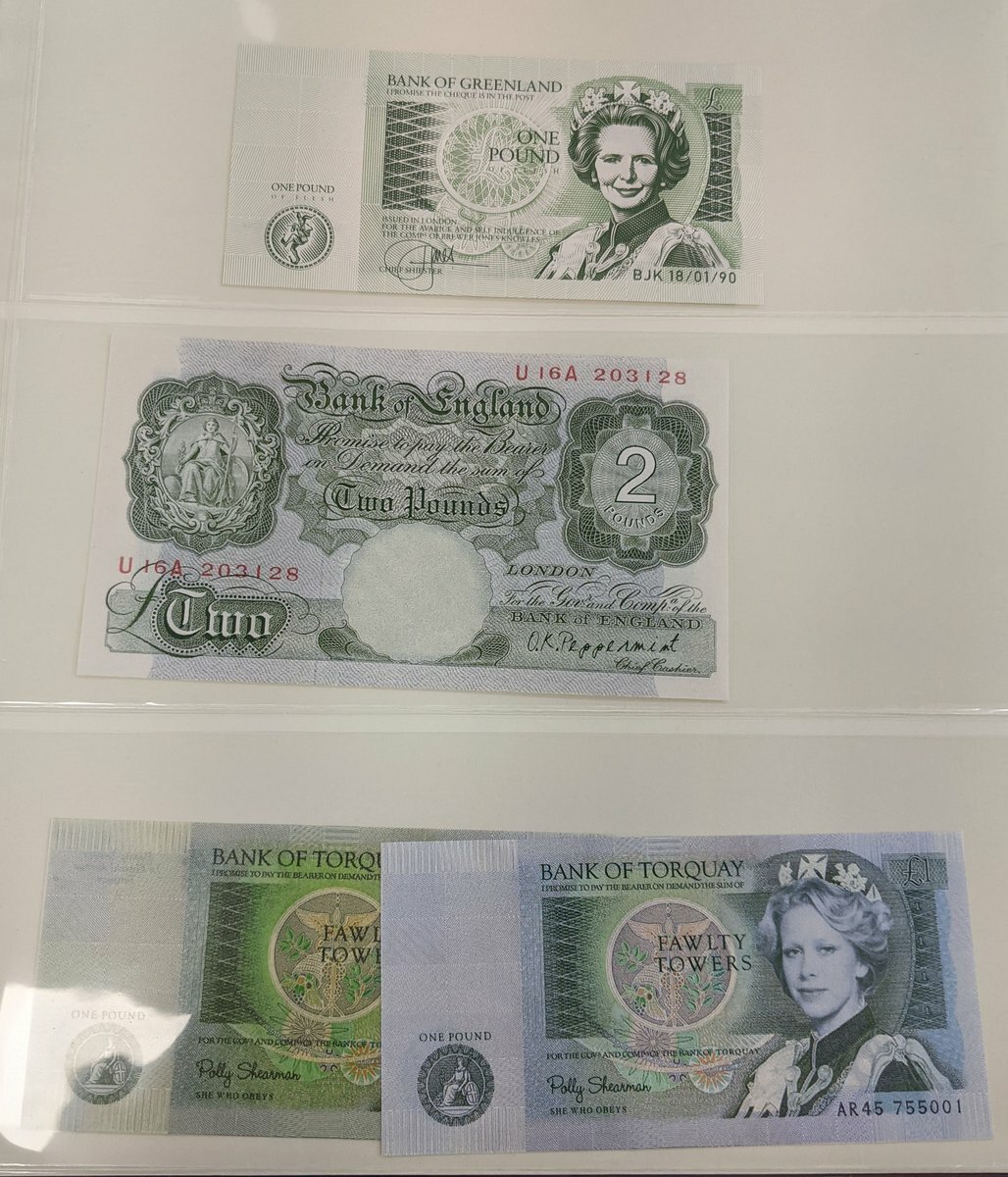 An album of skit notes and test notes, also some banknote related postcards,