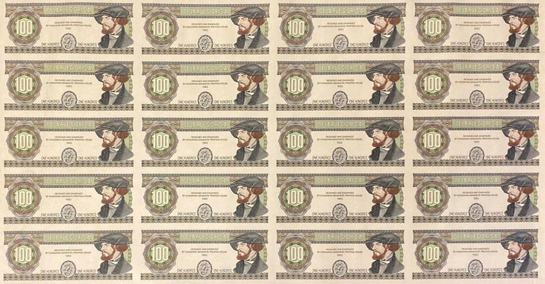De La Rue Giori S.A Test Sheet, Uniface Sheet, Designed and Engraved by Hungarian Banknote Printing House 1983, Bearded male portrait at right,