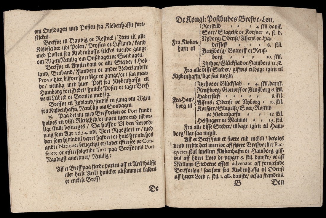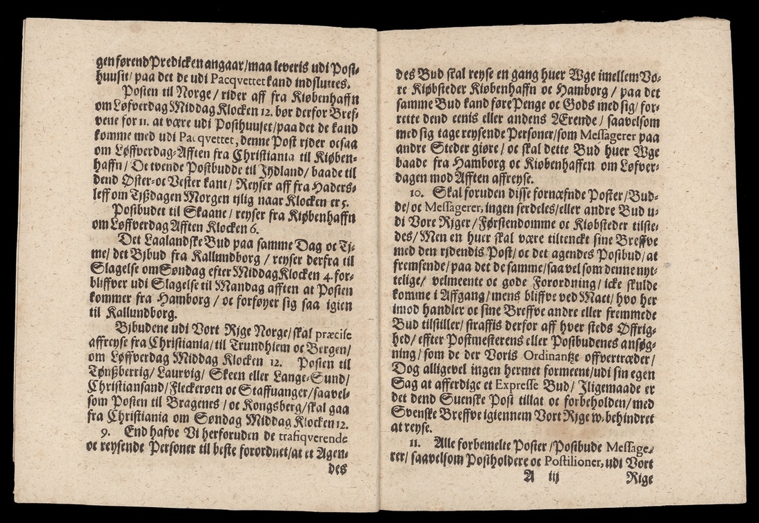 1653 (30 Nov.), thirteen page Royal Decree by King Frederik III, regarding the organisation of postmen in Denmark and Norway and the handling of post between his cities; fine