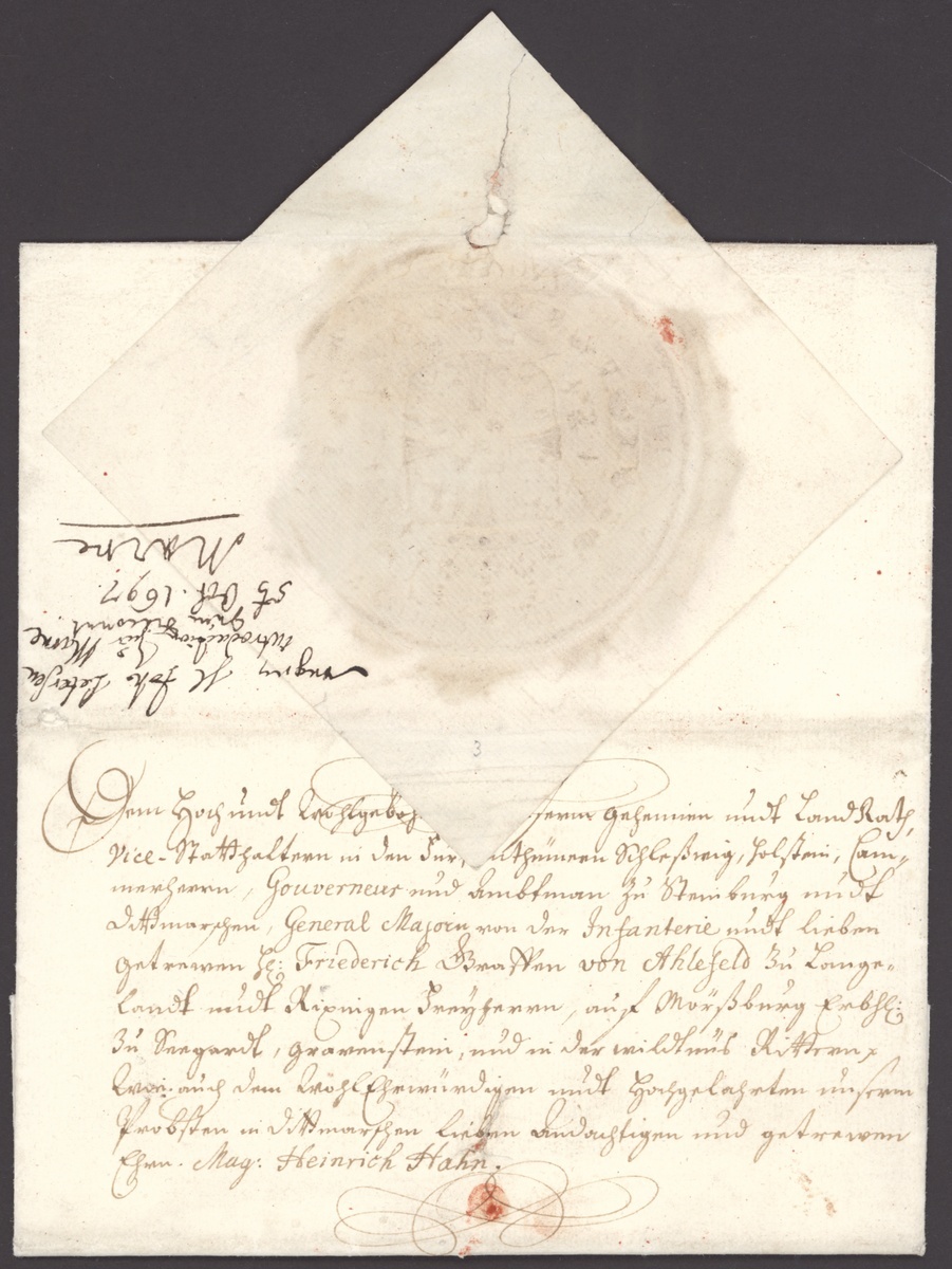 1669 (5 Oct.) entire letter dealing with military matters, with superb paper seal of Christian V and signed by him; fine