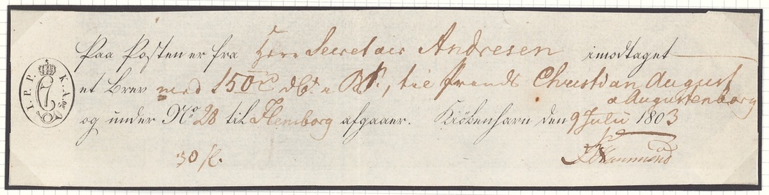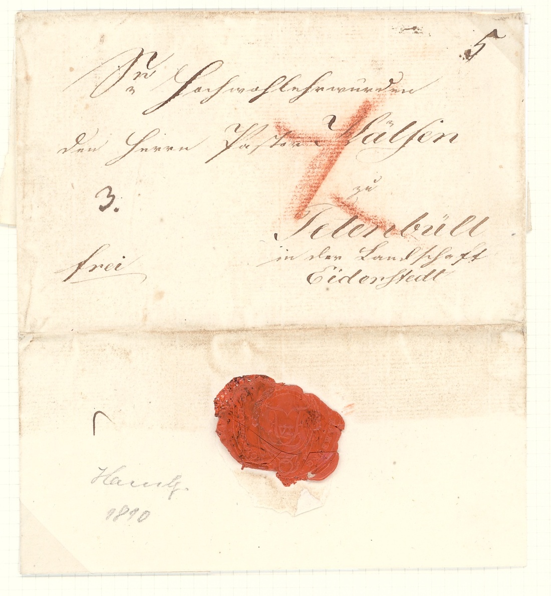 1716-1810, selection of ten items, including an engraving of King Christian IV, 1716 entire letter from Strahlsund to Bergen, 1724 entire from Flensburg to Stralsund, 1798 entire letter from Kellinghusen to Oldeslohe, 1808 entire letter from Copenhagen to Breitenburg, 1809 damaged entire letter from the Danish West Indies to Ireland, 1810 entire letter from Hamburg to Elderstedt, etc., a good variety of wax seals, list numbers, etc., mixed condition
