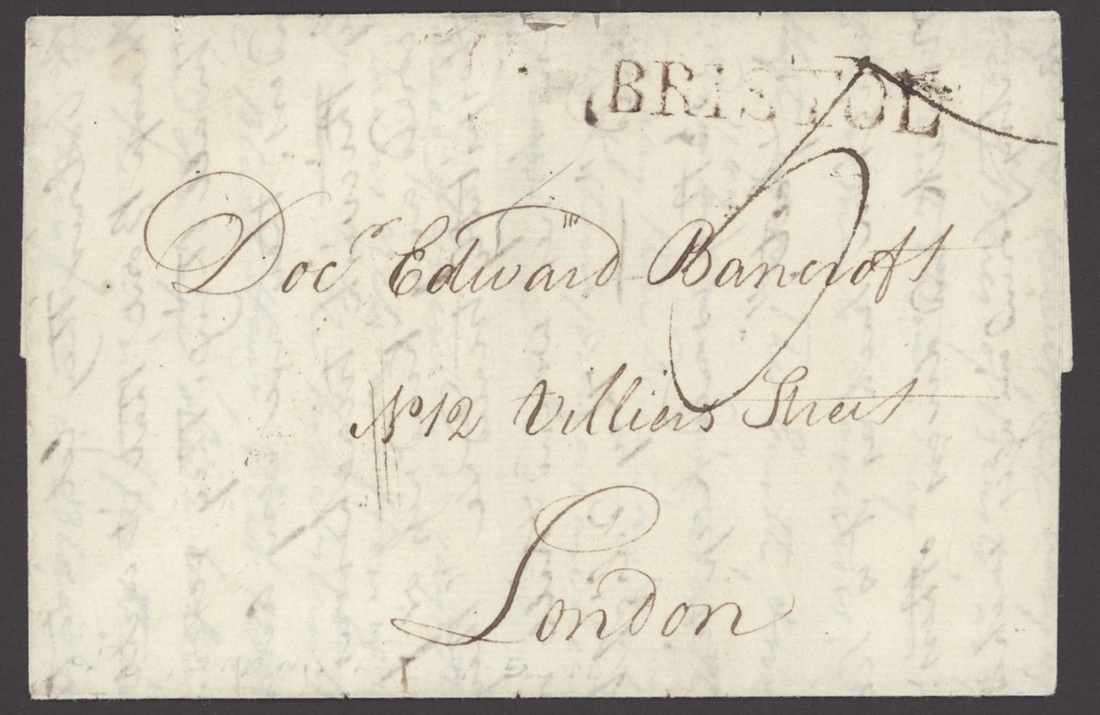 1780 (c.) entire letter to London, carried privately and put into the post at Bristol with fine