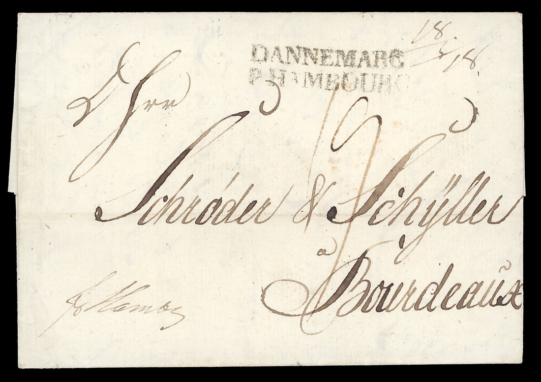 1811 (18 Sept.) entire letter from Christiania to Bordeaux, censored and with cracked but complete red wax "