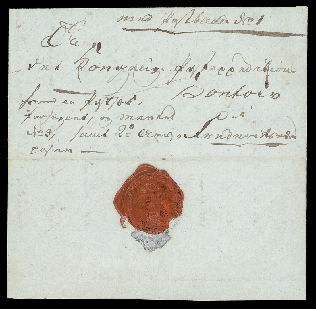 1813 (1 Sept.) Official Royal entire letter from the Norwegian Post Office in Jutland to the Sea Post Office at Frederiksvaern, on reverse largely intact red wax "