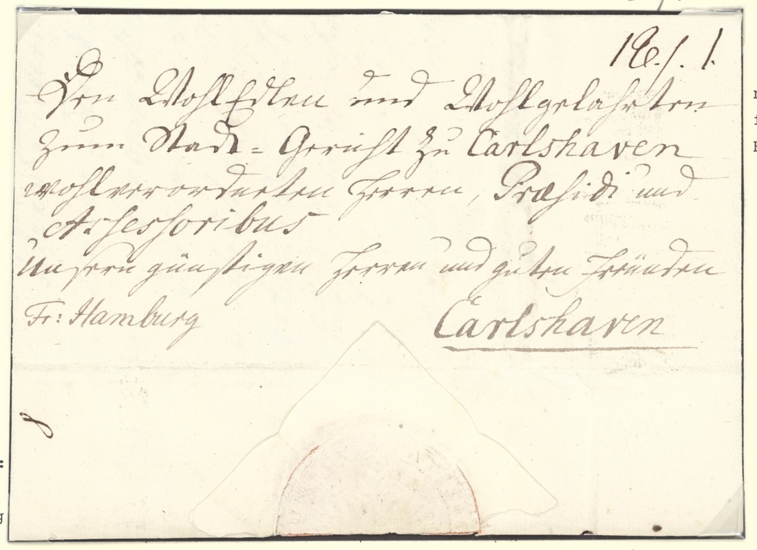 1771 (23 Sept.) entire letter from Lübeck to Carlshaven (Karkshamn), endorsed "Fr: Hamburg" and with manuscript rate marking equating to 1 Rd. Banco & 1 sk.b:co, on reverse list number 8 and superb "
