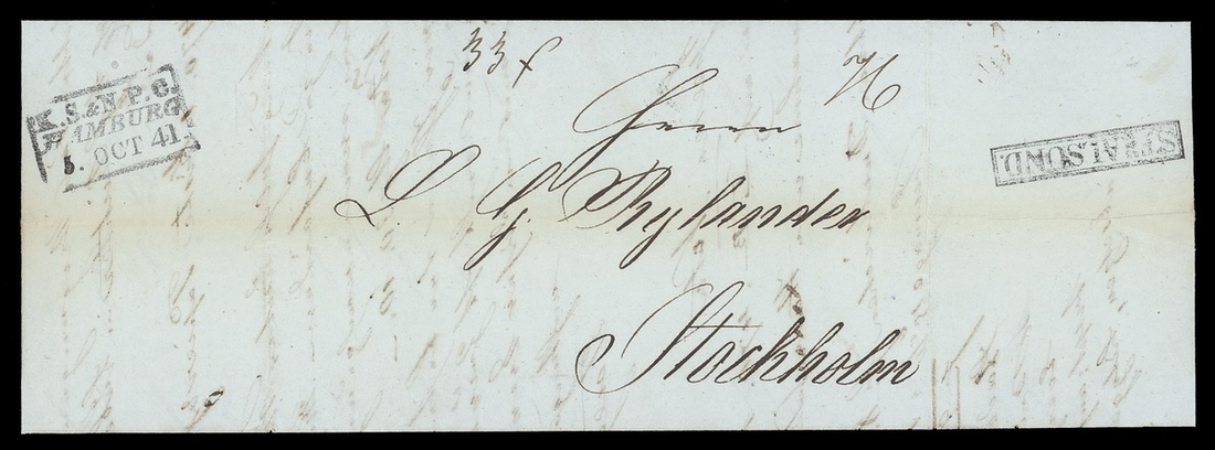 1841 (5 Oct.) entire letter from Hamburg to Stockholm, rated "33" in manuscript on the front, on reverse framed "