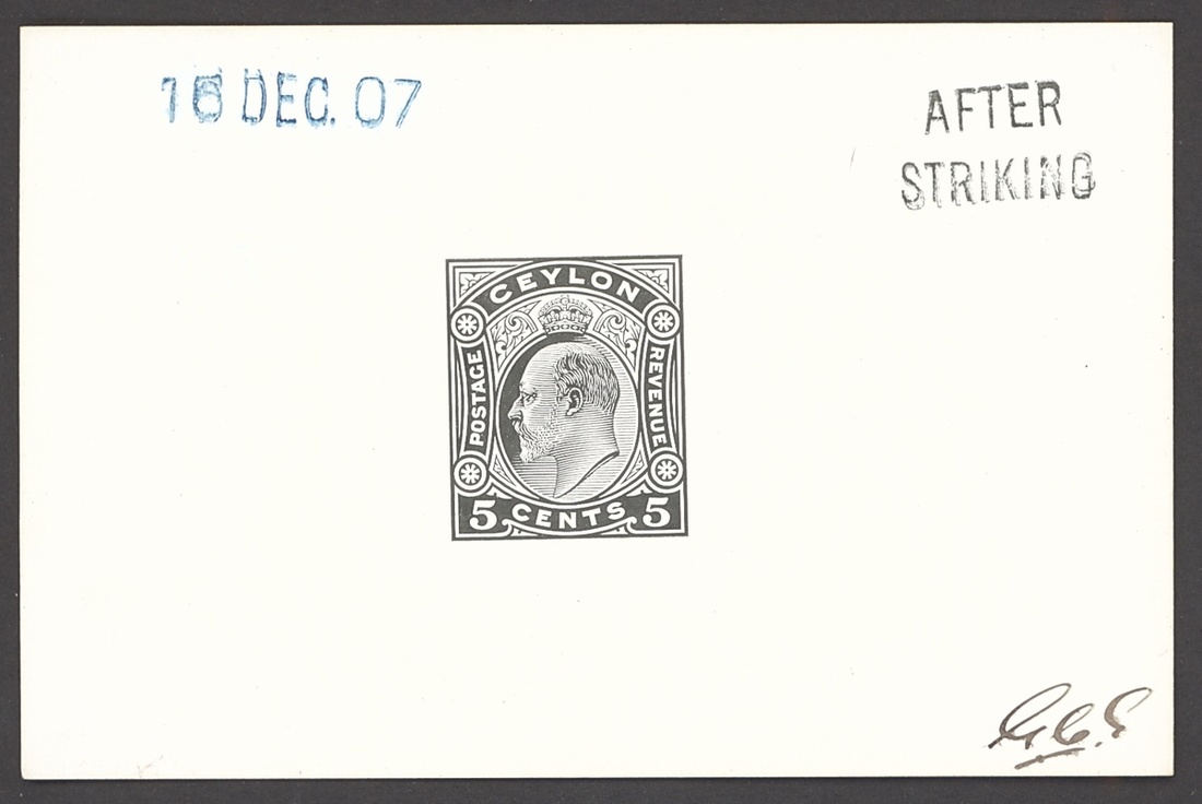 1908 5c. die proof in black on glazed card (92x60mm.) marked