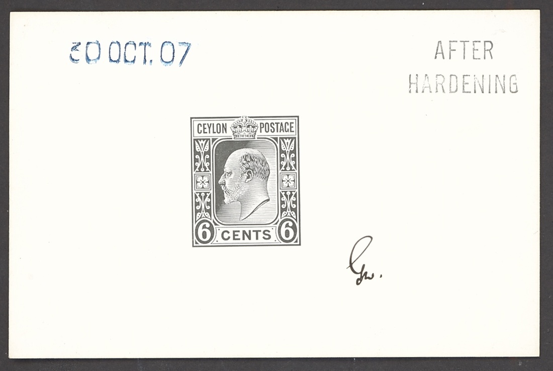 1908 6c. die proof in black on glazed card (92x60mm.) marked