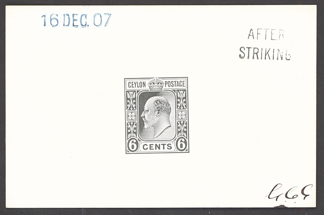 1908 6c. die proof in black on glazed card (92x60mm.) marked