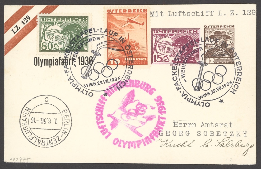 Berlin: 1936, special "LZ129" Austrian 12g. + 15g. postal stationery card, additionally franked Air 10g. and 80g. with