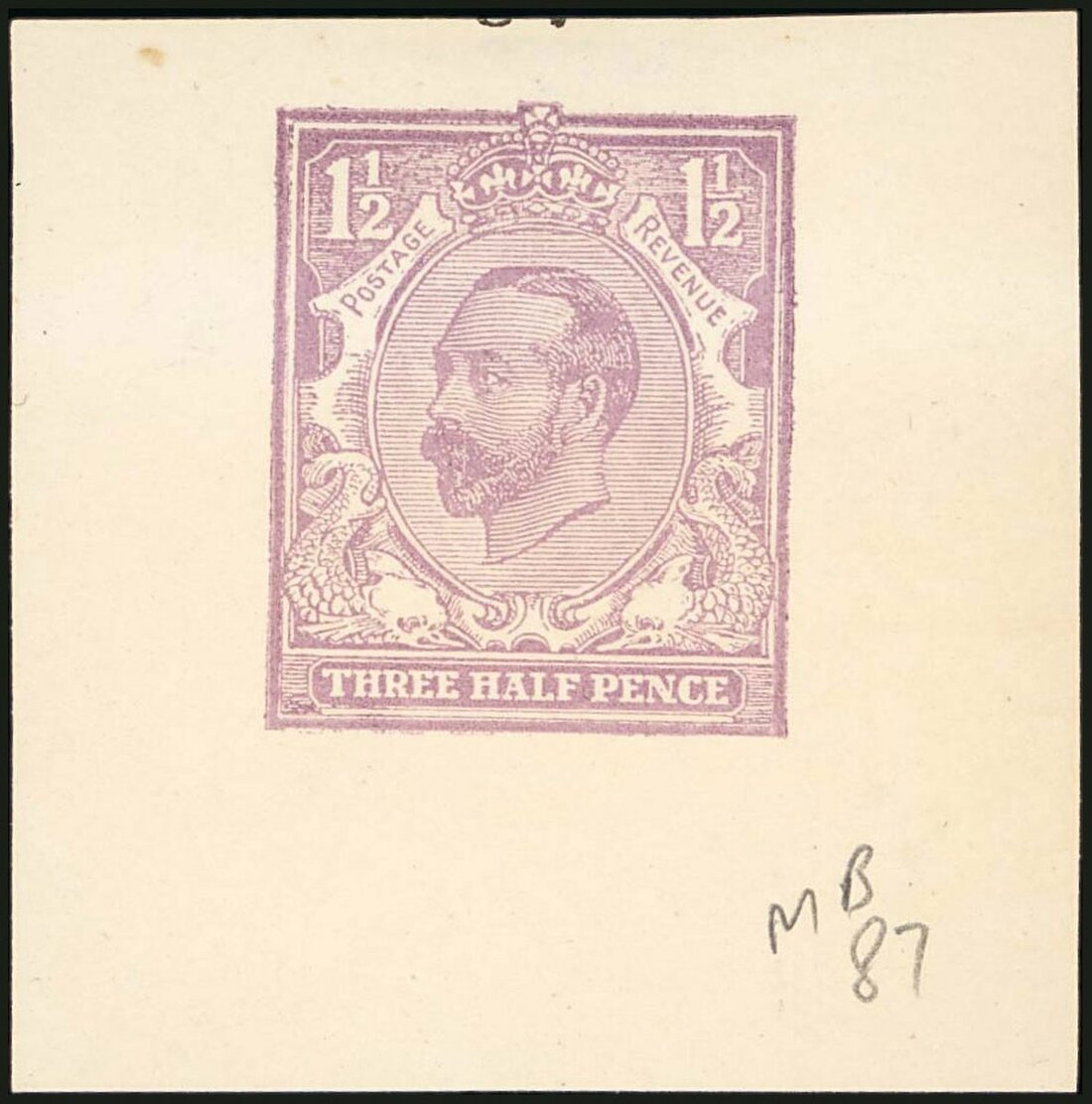 1½d. dull reddish purple on white unwatermarked paper (37x39mm), with non contemporary pencil "MB/87" below the design; fine. Photo
